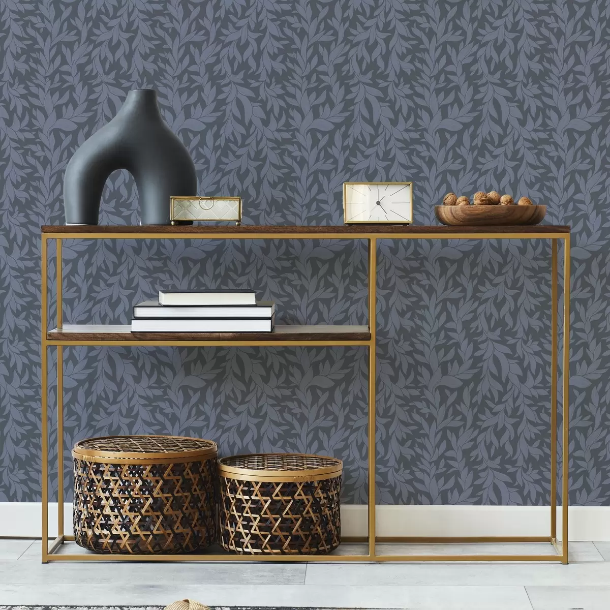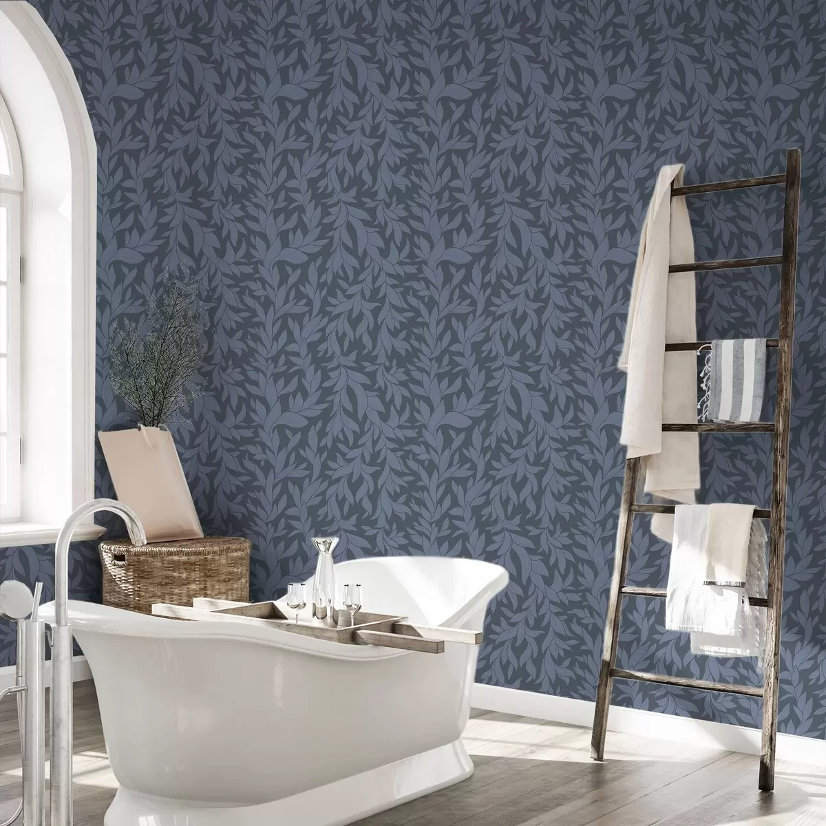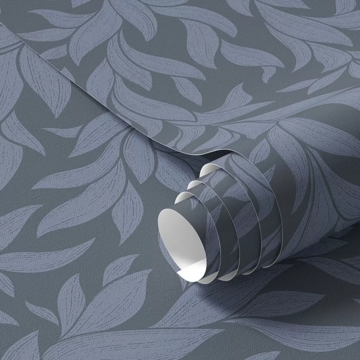 Tapetes Grafīta zils fons un zilas lapas, teksturēts kontūrs Nr. a00616v2