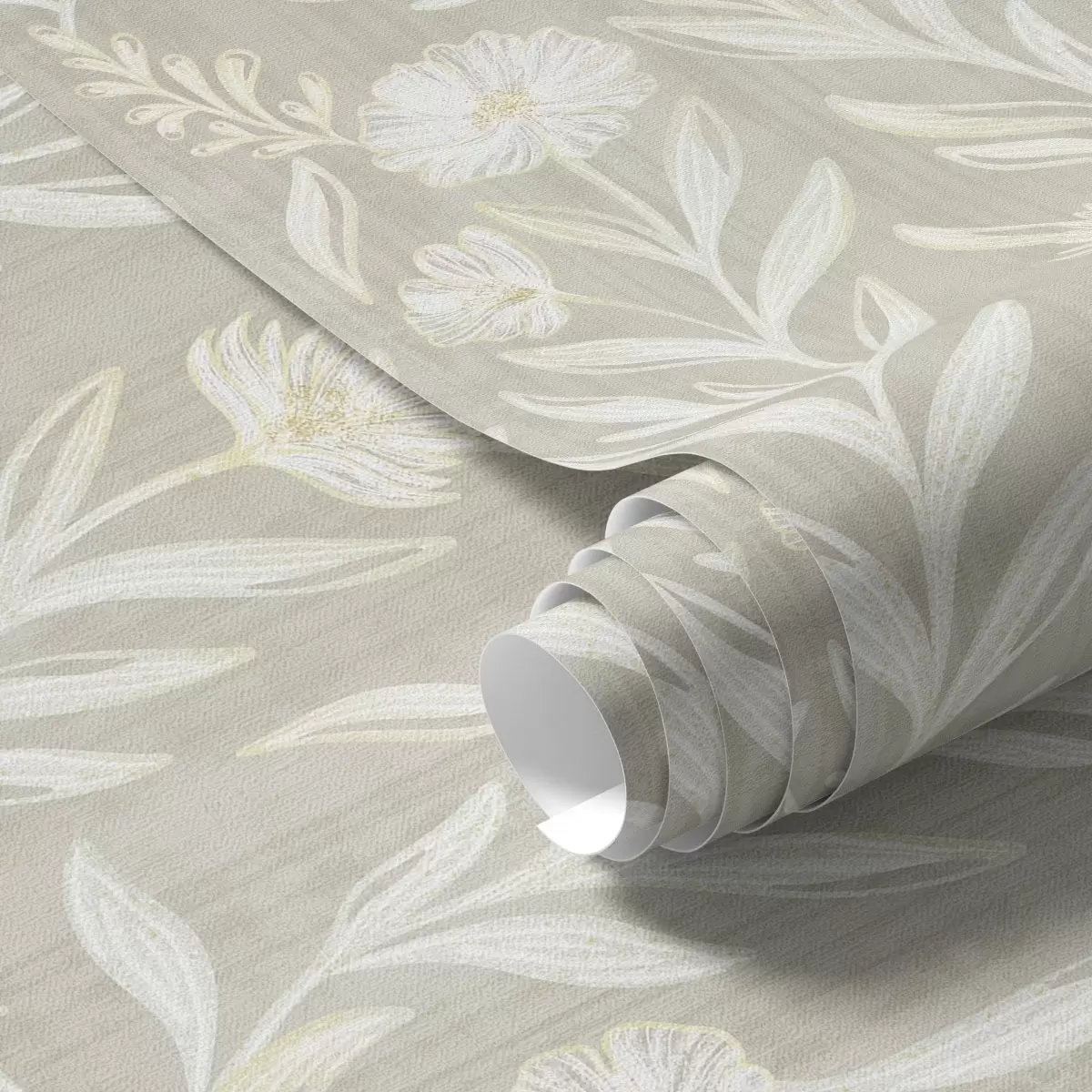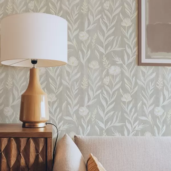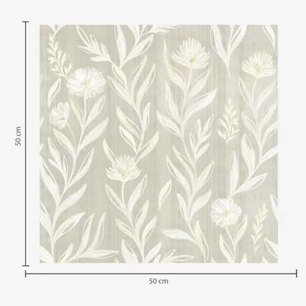 Tapetes Gaišas zāles un ziedi uz smilškrāsas fona, skicētas līnijas Nr. a00618