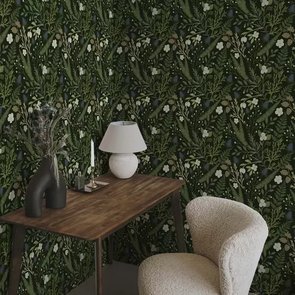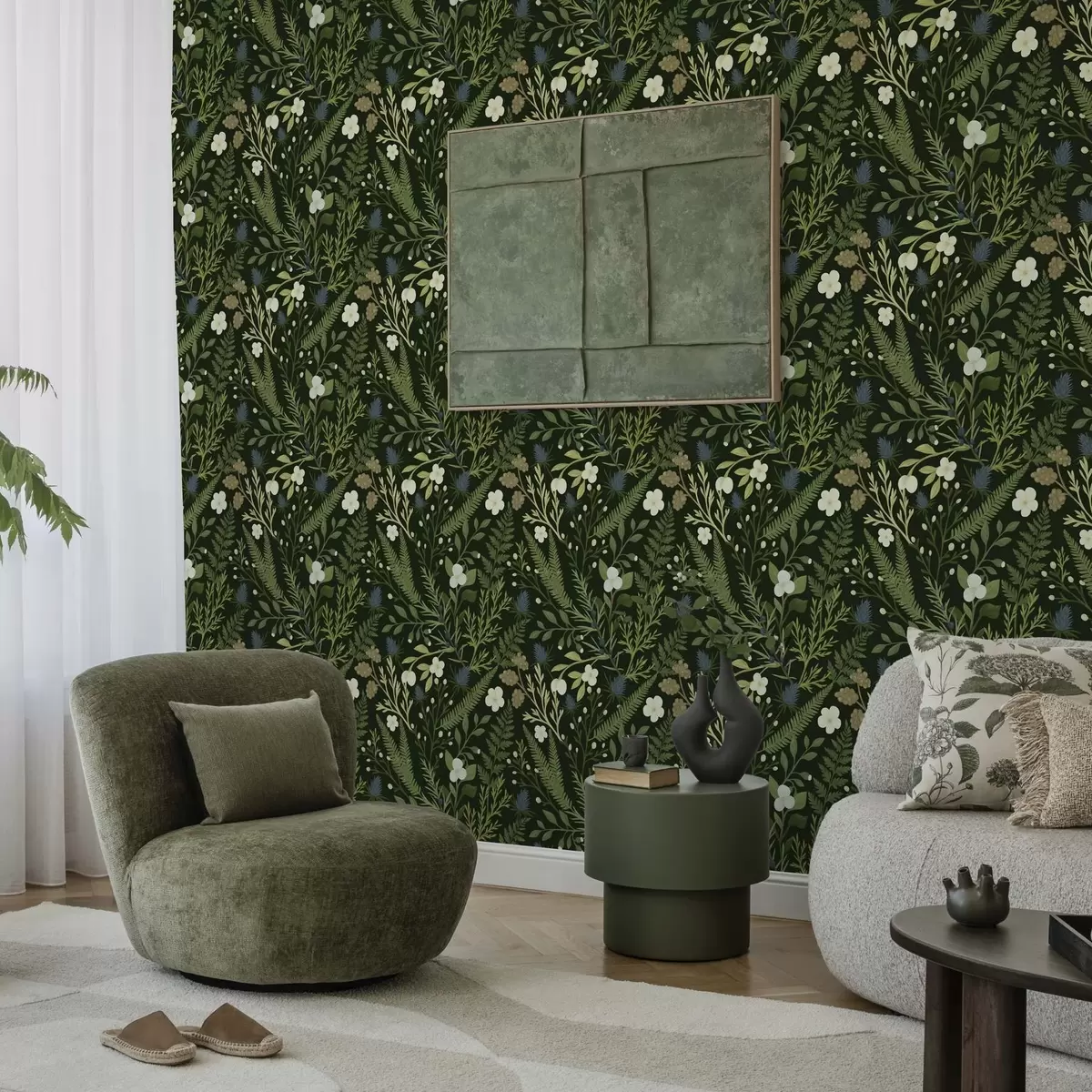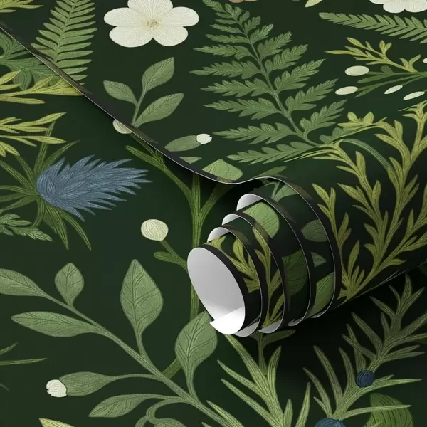 Tapetes Meža garšaugi un ogas uz tumši zaļa fona Nr. a00621v2