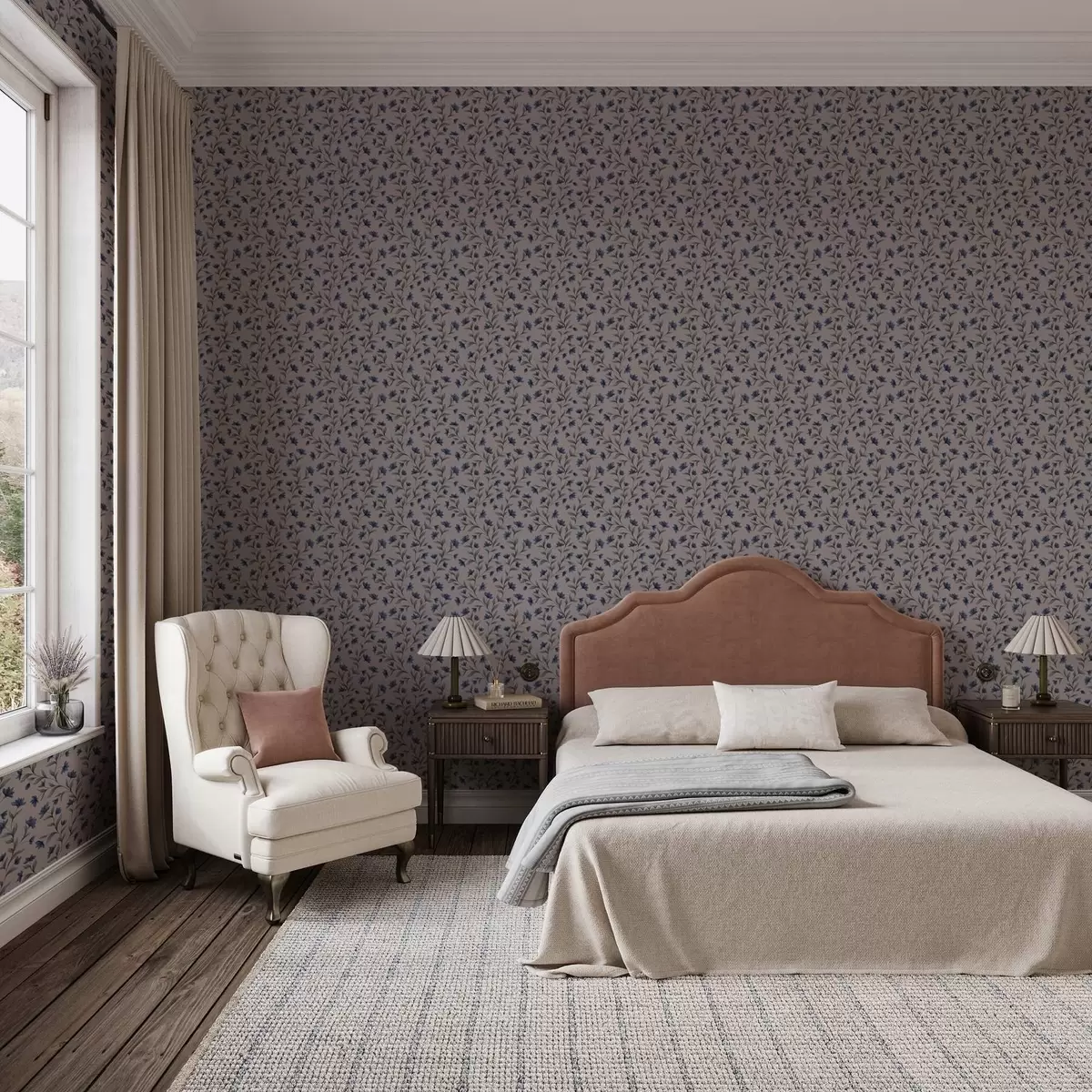 Tapetes Zilās zvaniņas uz pūderrozā fona Nr. a00622v2