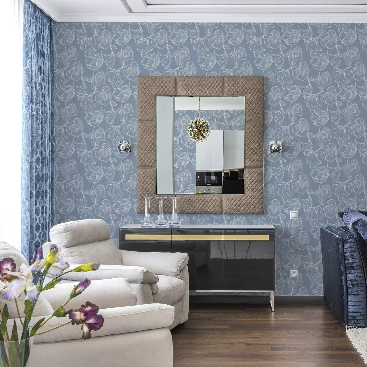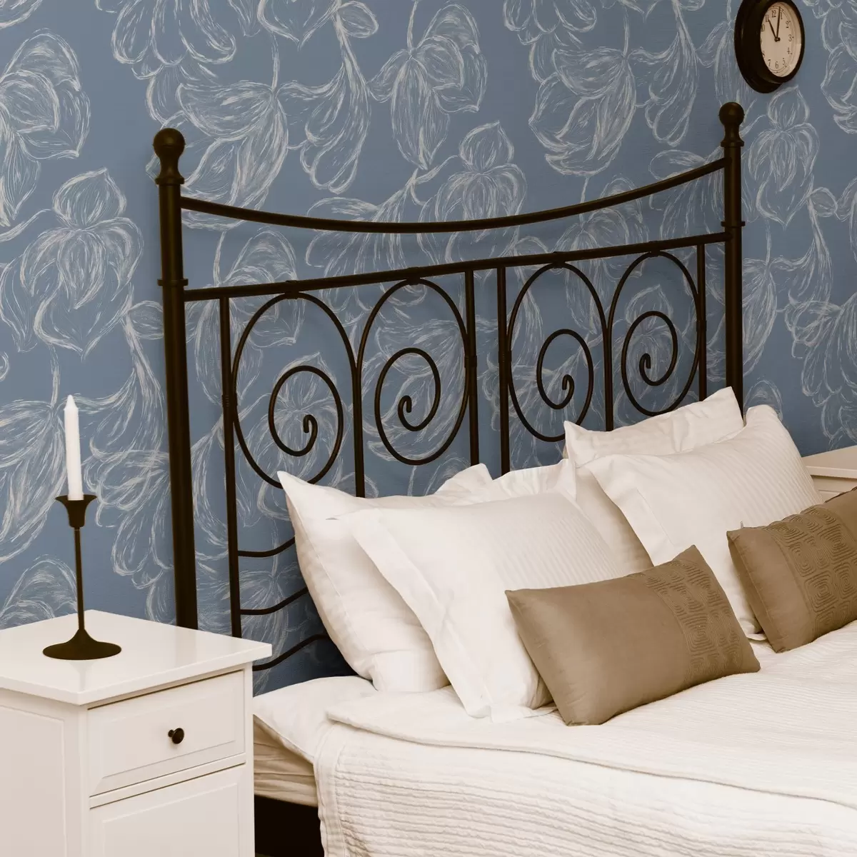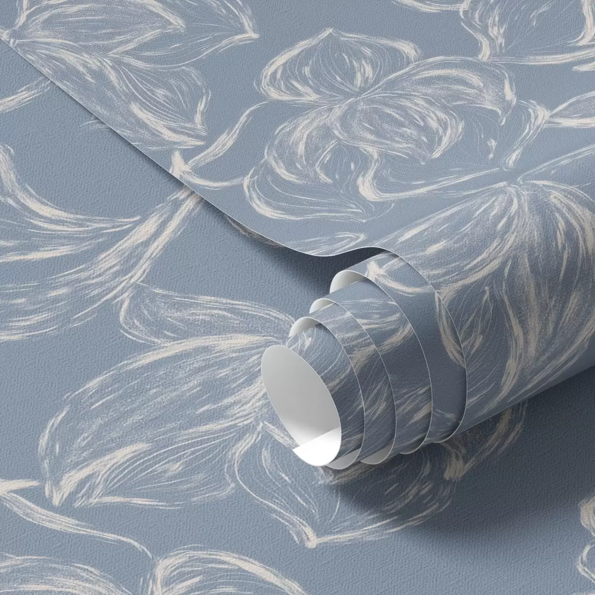 Tapetes Gaiši zils fons ar krīta kontūru ziediem Nr. a00625v3