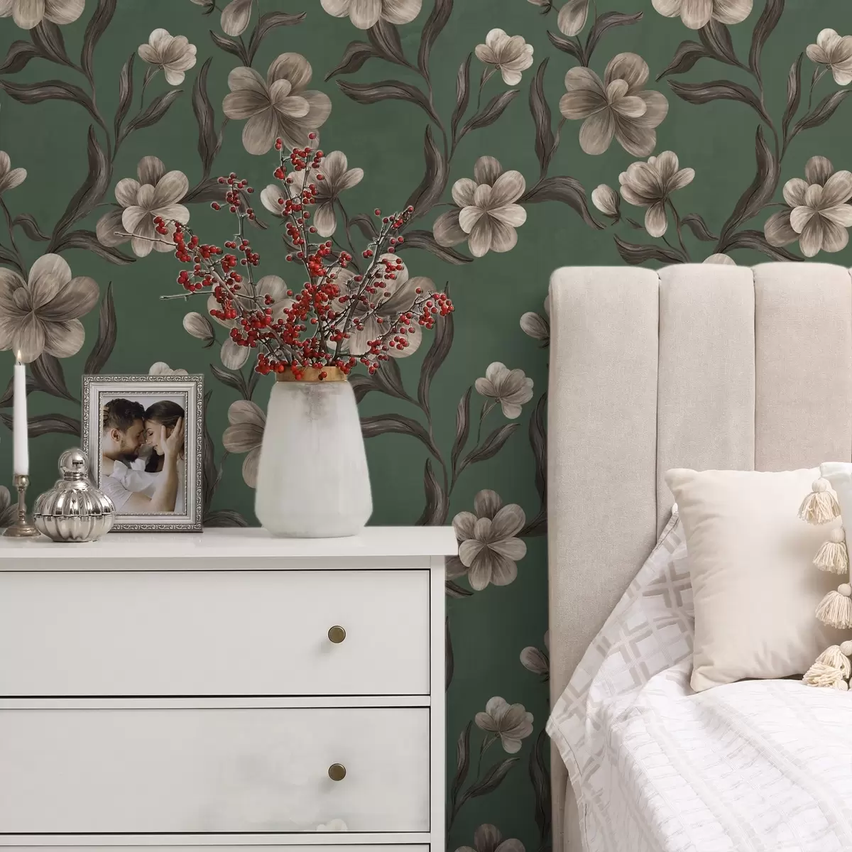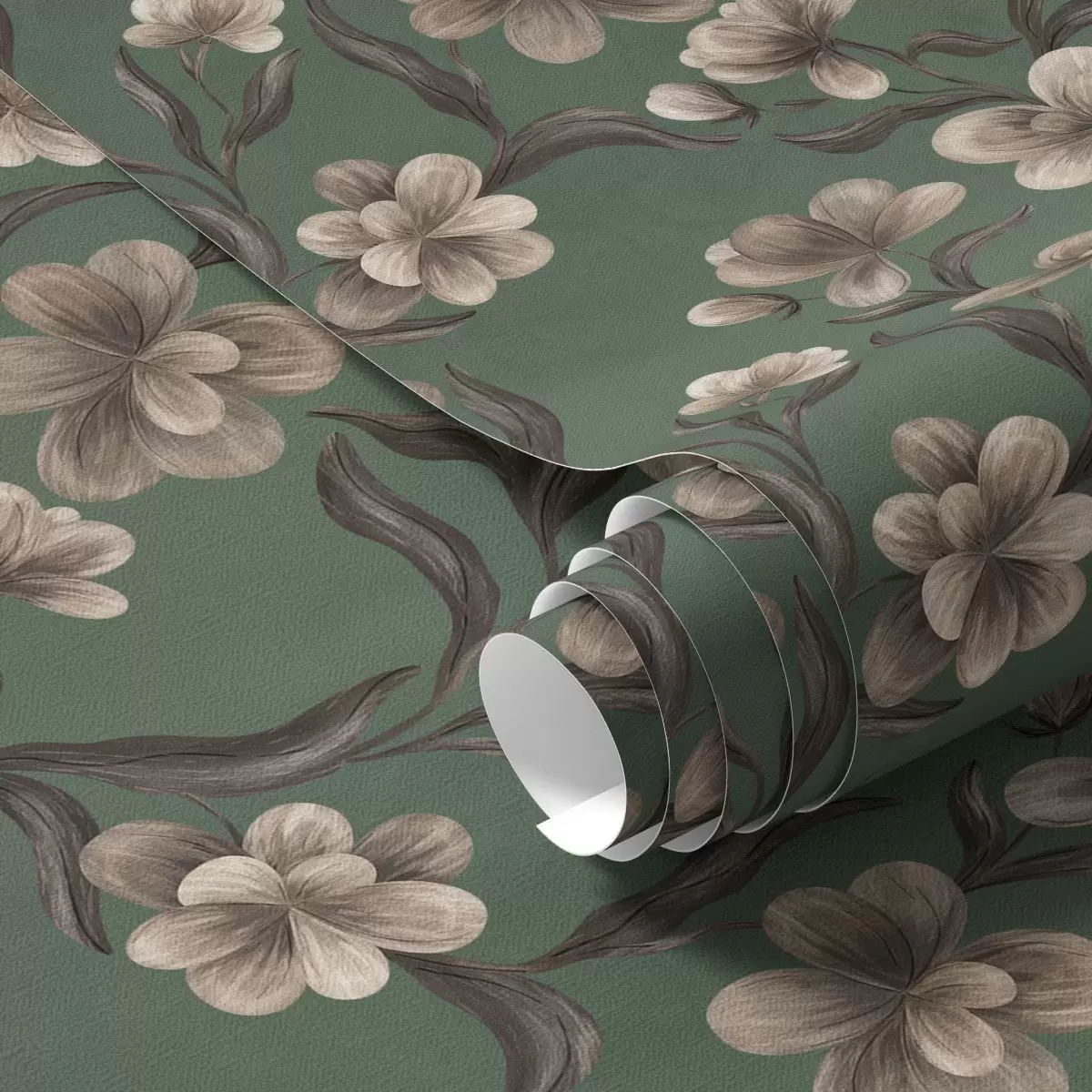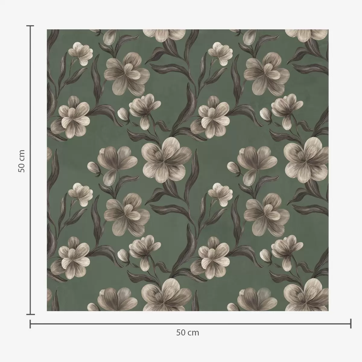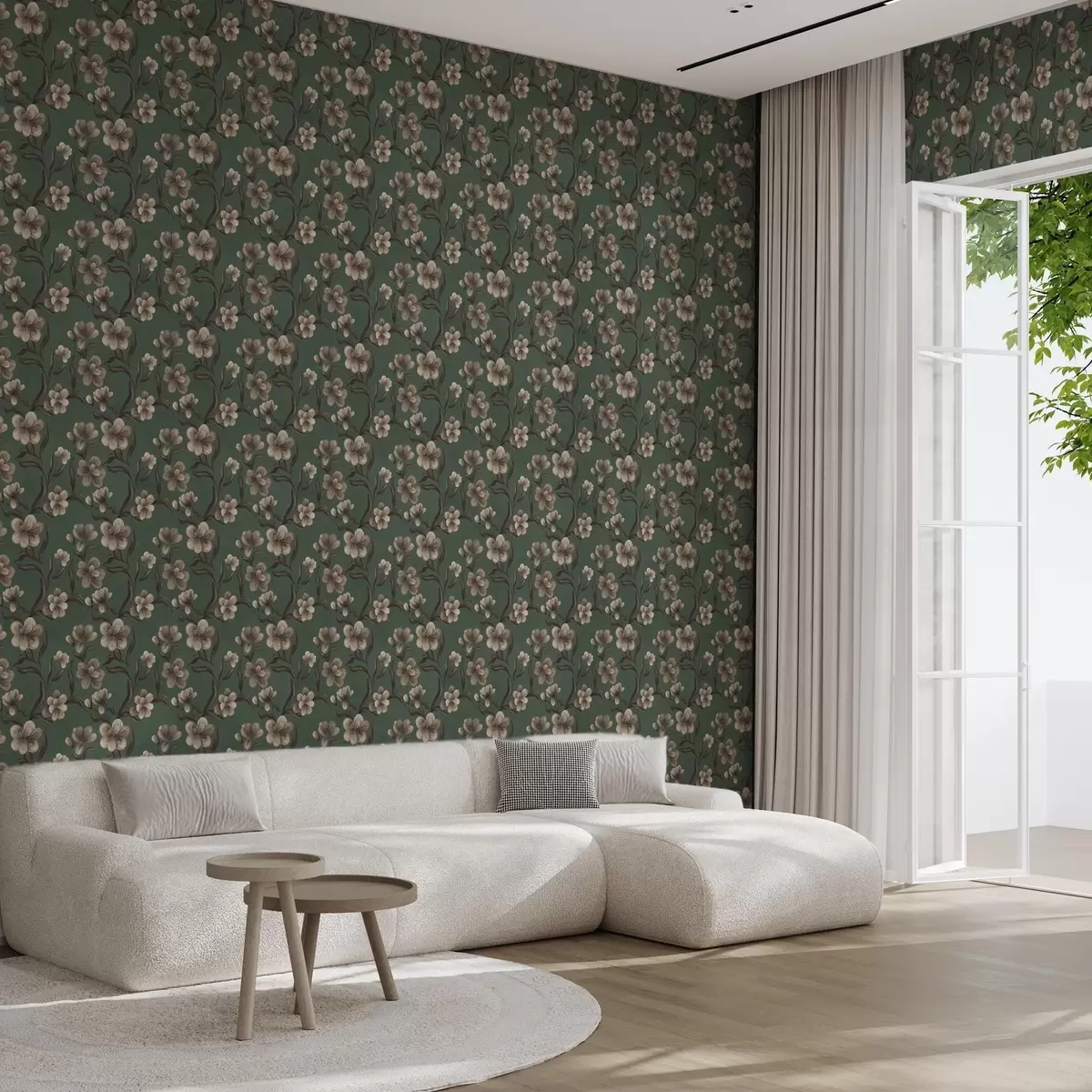 Tapetes Bēša krāsas ziedi uz bagātīgi zaļa fona Nr. a00626v3