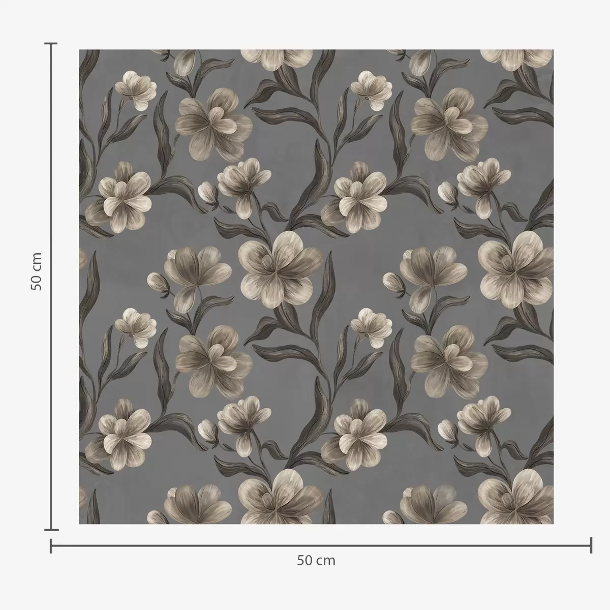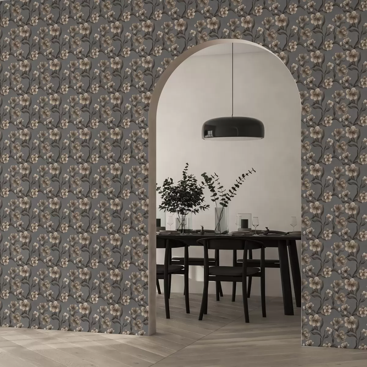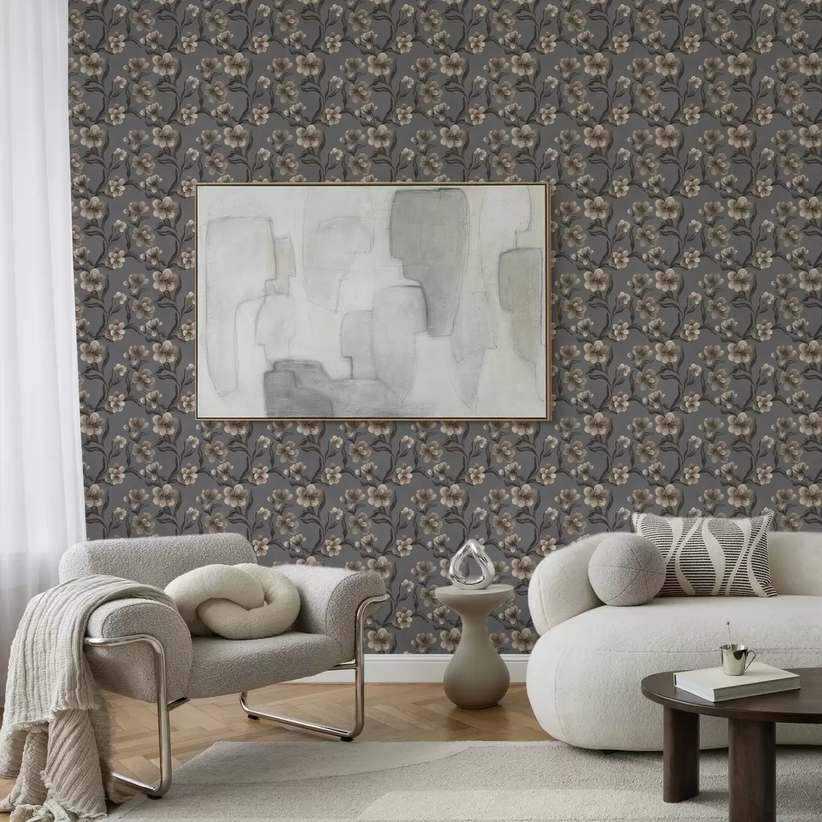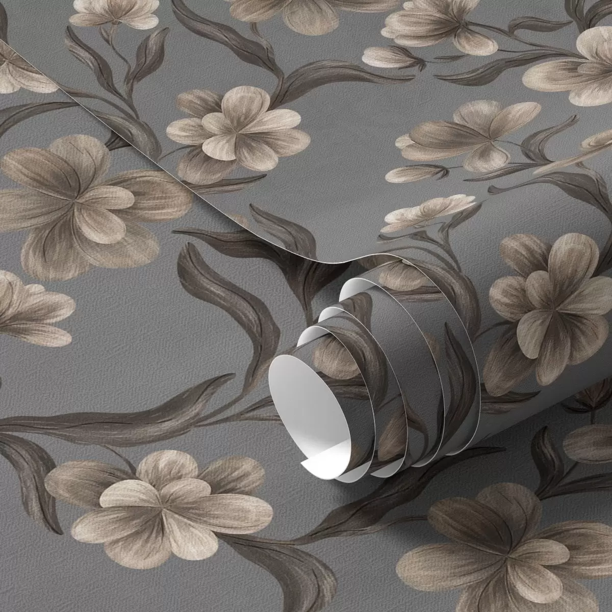 Tapetes Bēša krāsas ziedi uz grafīta pelēka fona Nr. a00626v4