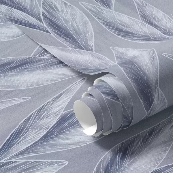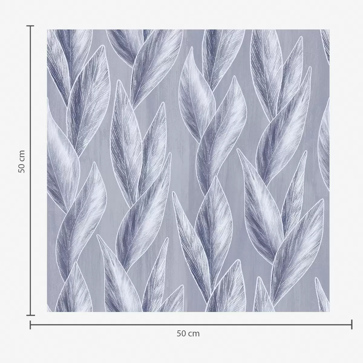 Tapetes Sudraba zilas lapas uz pelēkā fona, grafisks raksts Nr. a00627