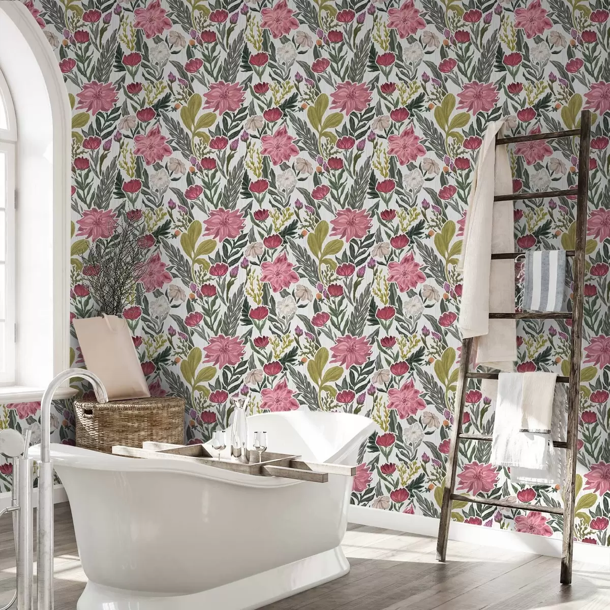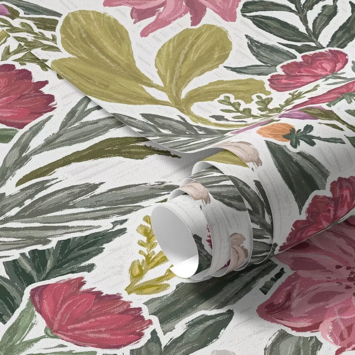 Tapetes Krāšņi rozā un krēmkrāsas ziedi uz balta fona, pastozas tekstūras Nr. a00629v1