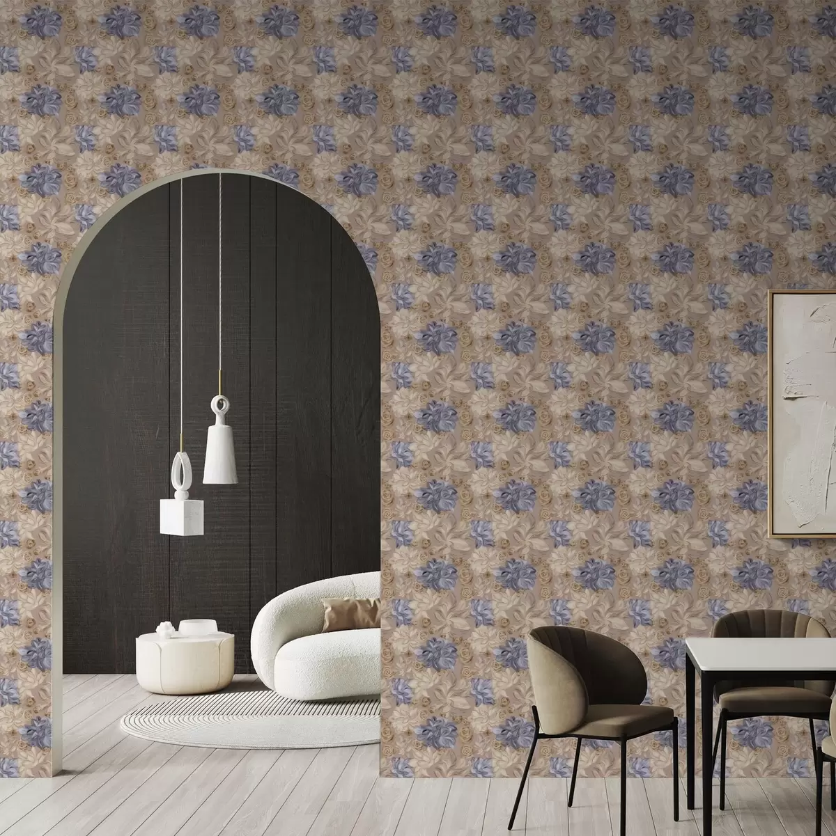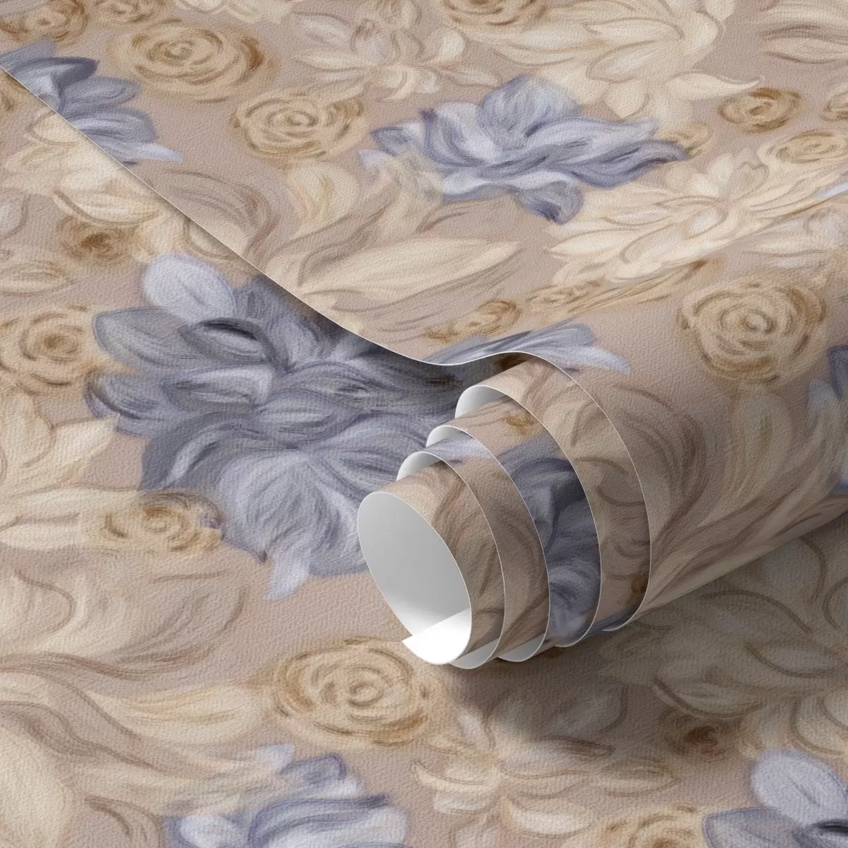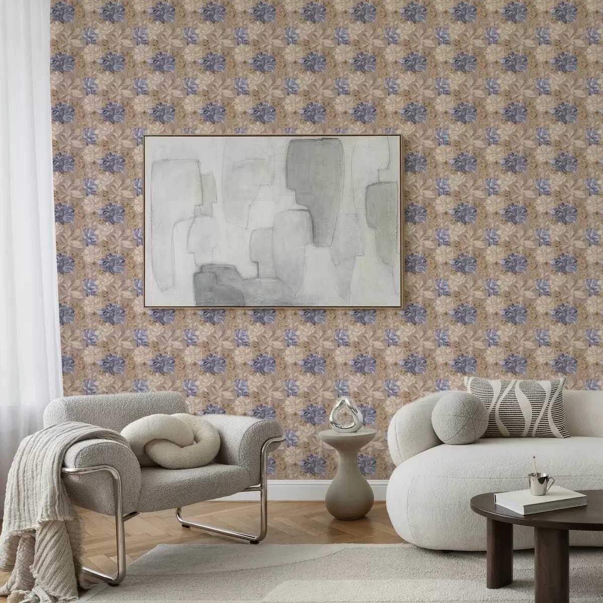 Tapetes Krāšņs krēms un zilas puķes pasteļtoņos Nr. a00634
