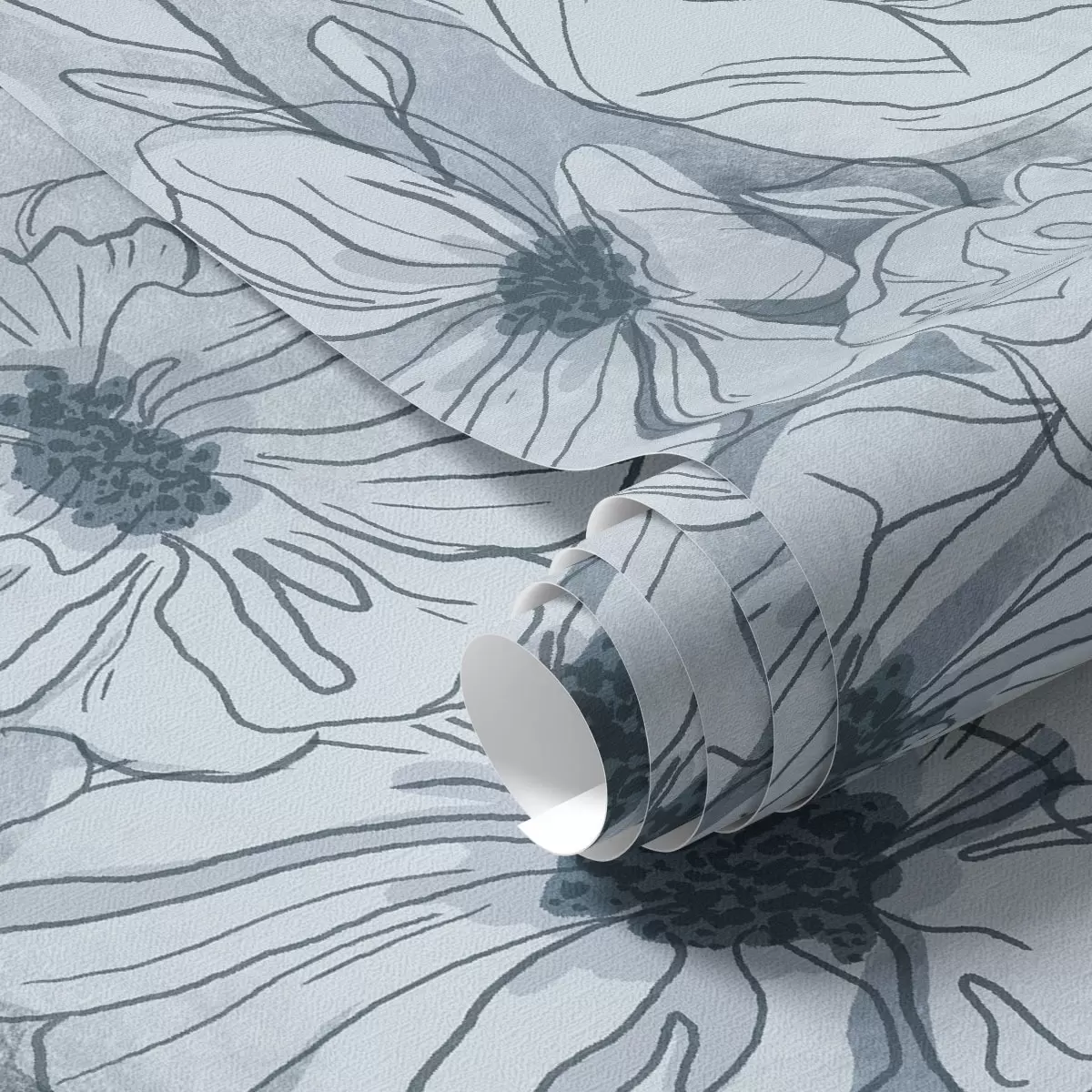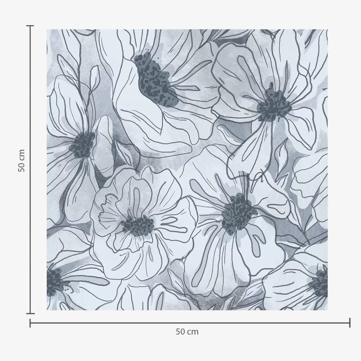 Tapetes Lineāras puķes vēsā pelēkā un zilā krāsu gamā Nr. a00636v2