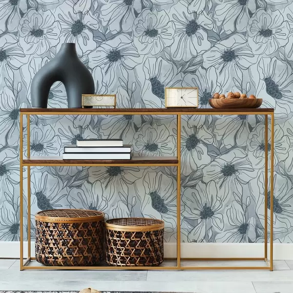 Tapetes Lineāras puķes vēsā pelēkā un zilā krāsu gamā Nr. a00636v2
