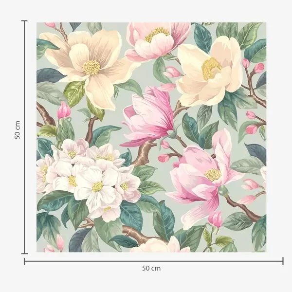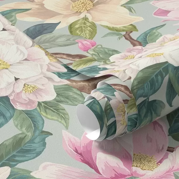 Tapetes Magnolijas un baltas ziedlapiņas uz mīkstā pelēkā fona Nr. a00644