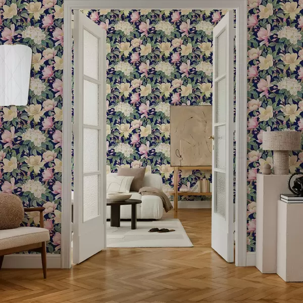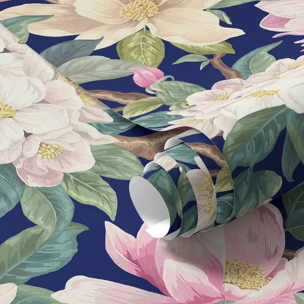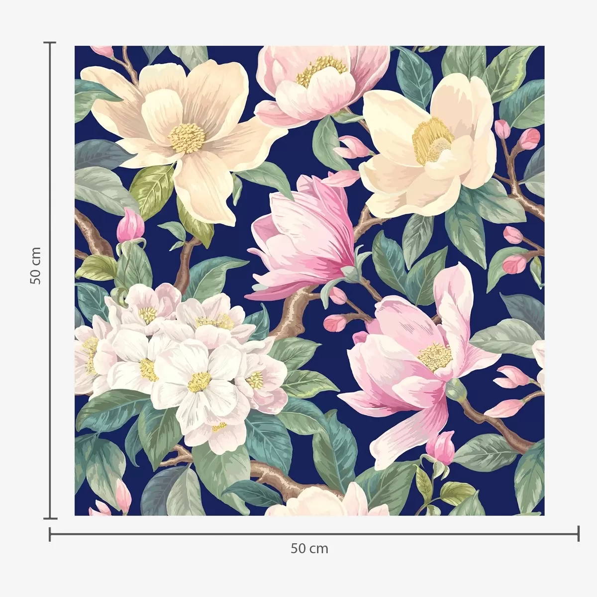 Tapetes Magnolijas un pumpuri uz tumši zila fona Nr. a00644v1