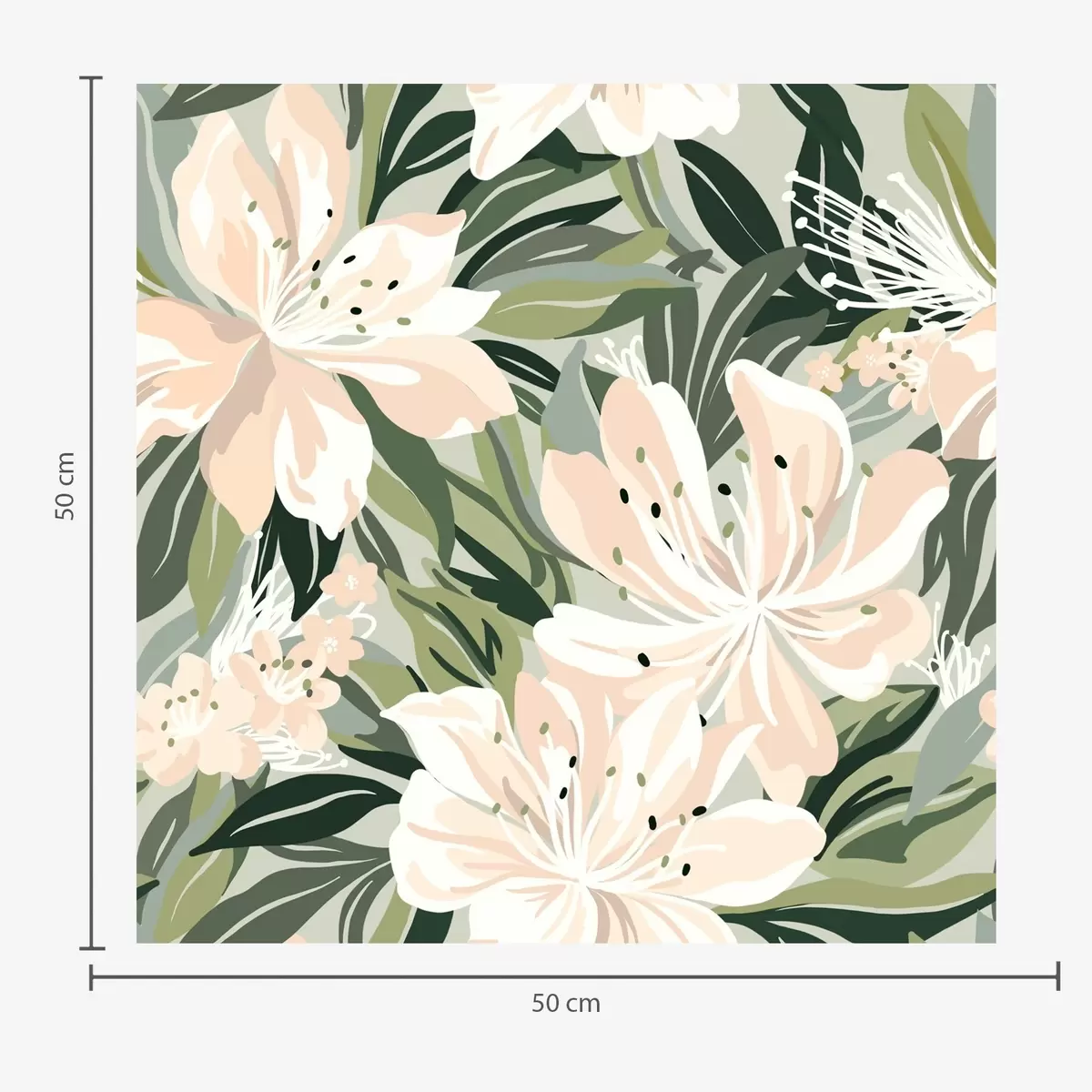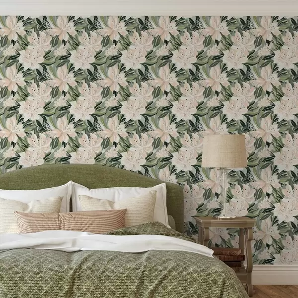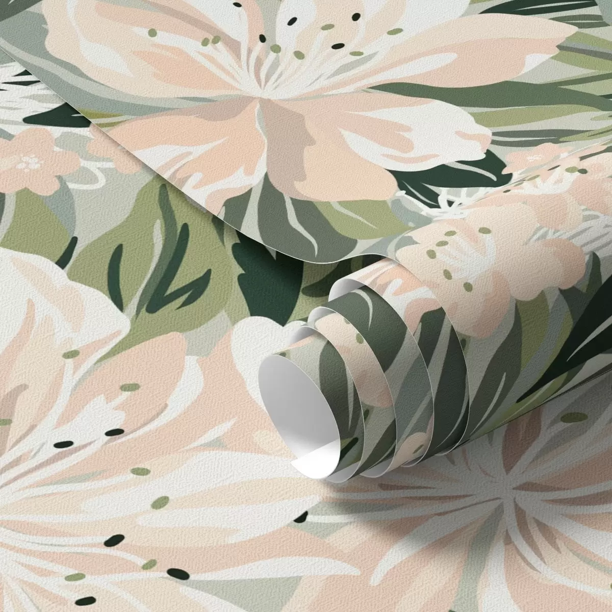 Tapetes Lieli krēmkrāsas ziedi uz gaiši zaļa fona Nr. a00646