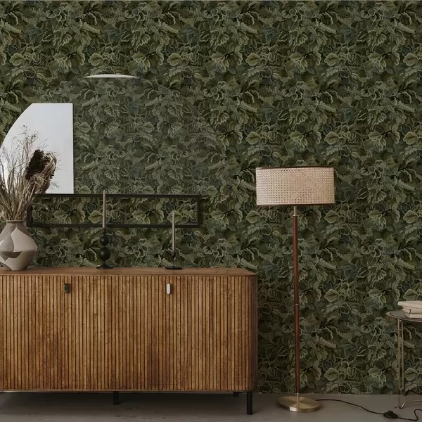 Tapetes Blīvas vīnogu lapas tumši zaļā krāsu gamā Nr. a00647