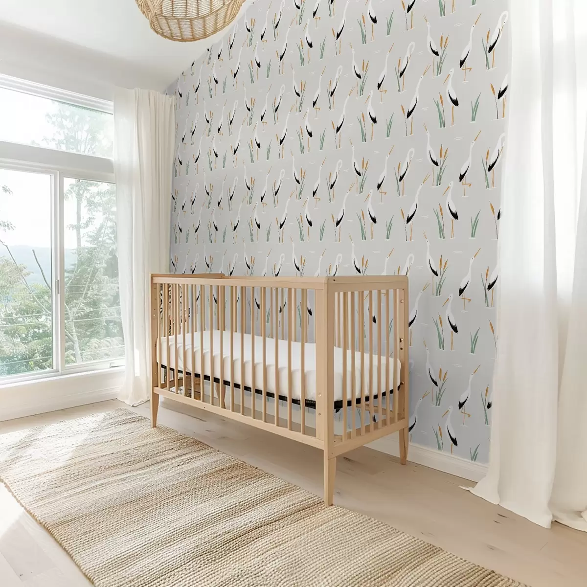 Tapetes Gārņi niedrājos uz gaiši pelēka fona Nr. a00650