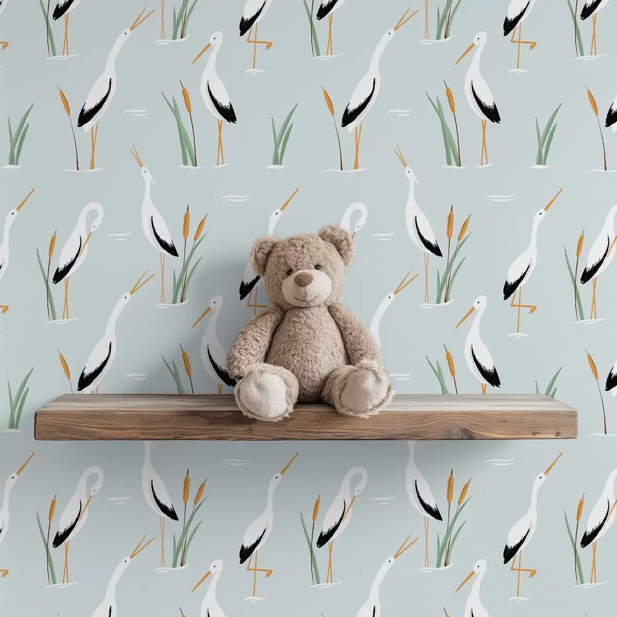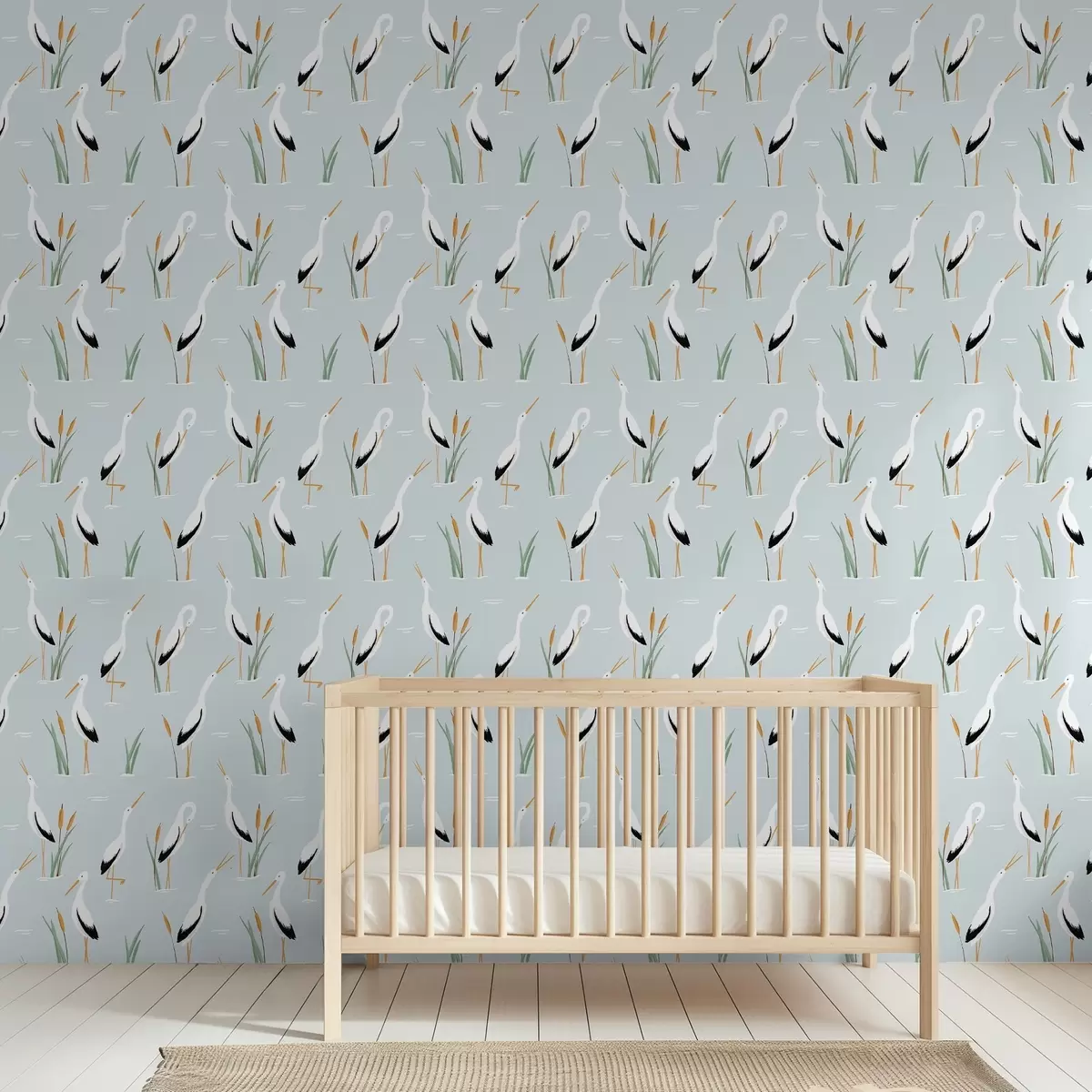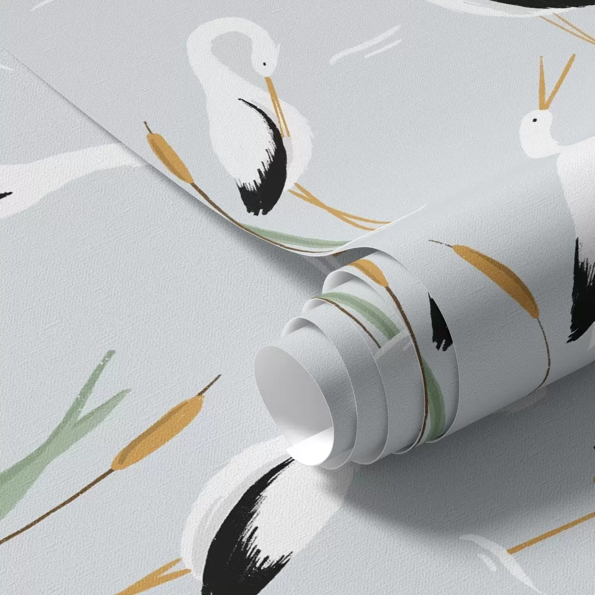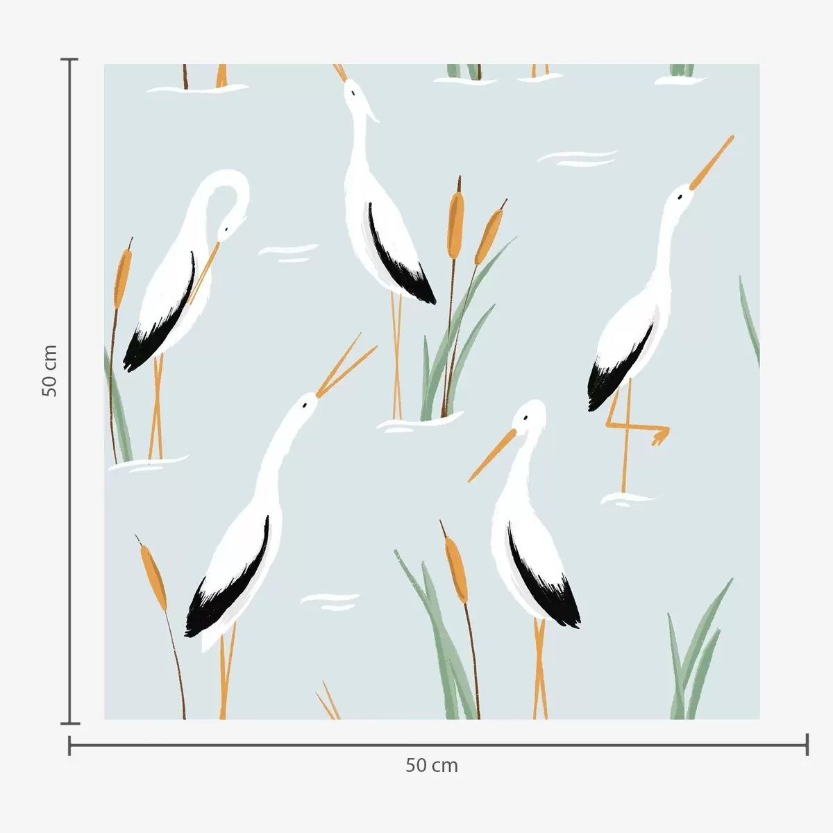 Tapetes Gārņi niedrājos uz maiga zila fona Nr. a00650v1