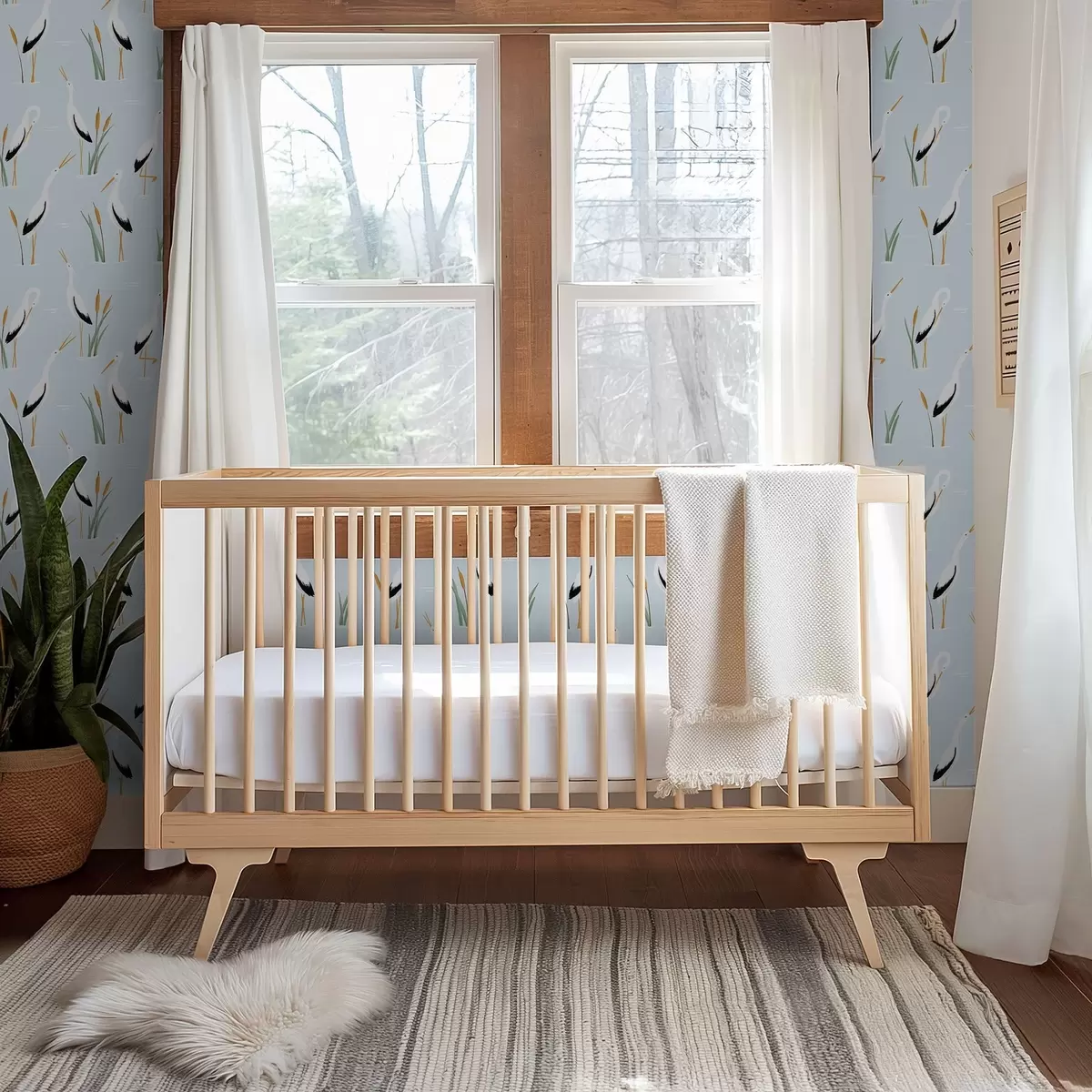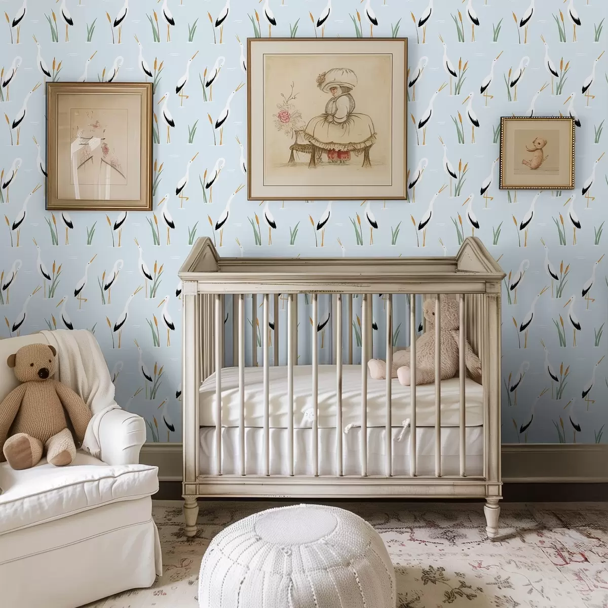 Tapetes Gārņi niedrājos uz maiga zila fona Nr. a00650v3