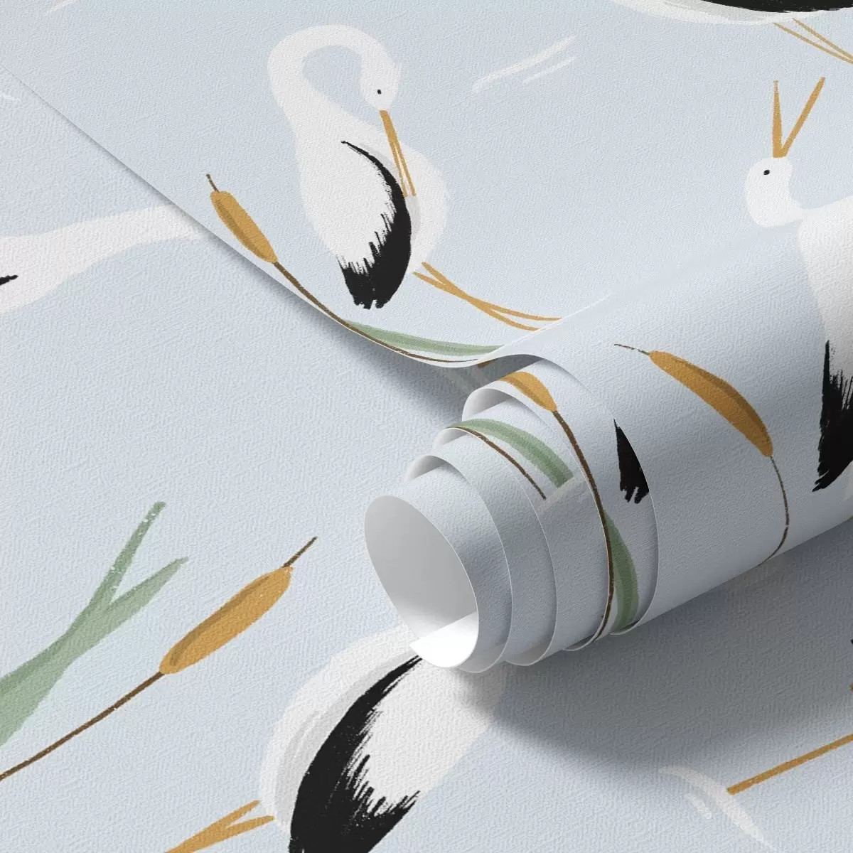 Tapetes Gārņi niedrājos uz maiga zila fona Nr. a00650v3