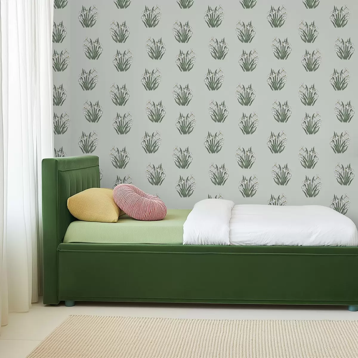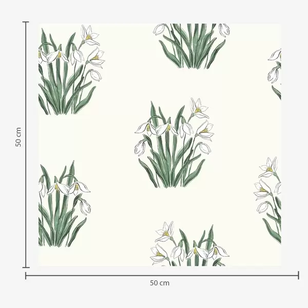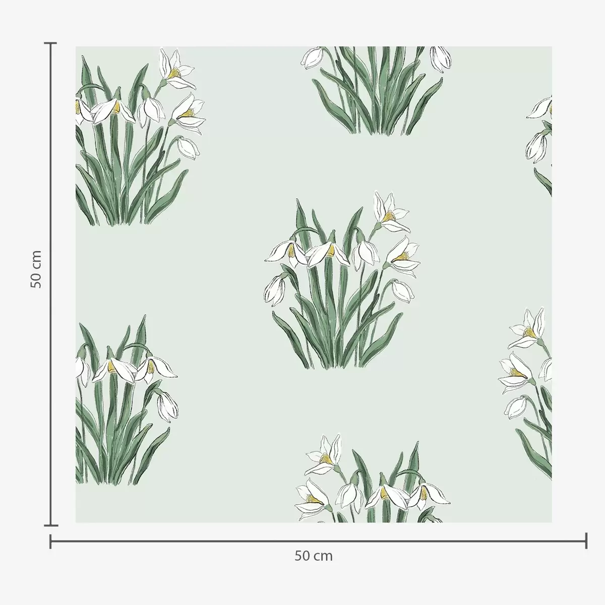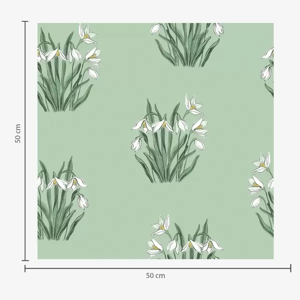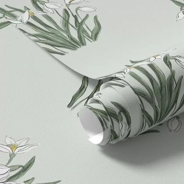 Tapetes Sniegpulkstenītes ar zaļām lapām uz pasteļzaļa fona Nr. a00651