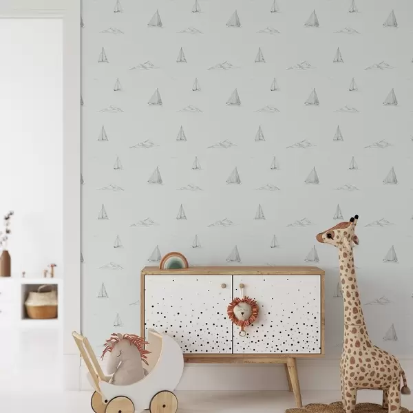 Tapetes Skices ar jahtām un salām, vēsā zils-pelēkā fonā Nr. a00654