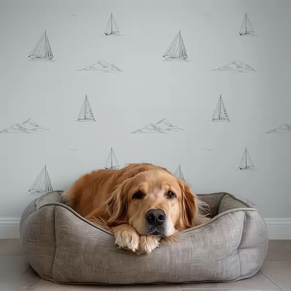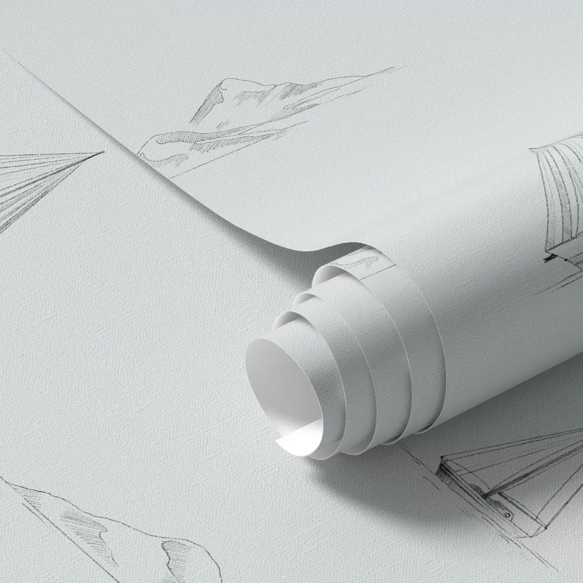 Tapetes Skices ar jahtām un salām, vēsā zils-pelēkā fonā Nr. a00654