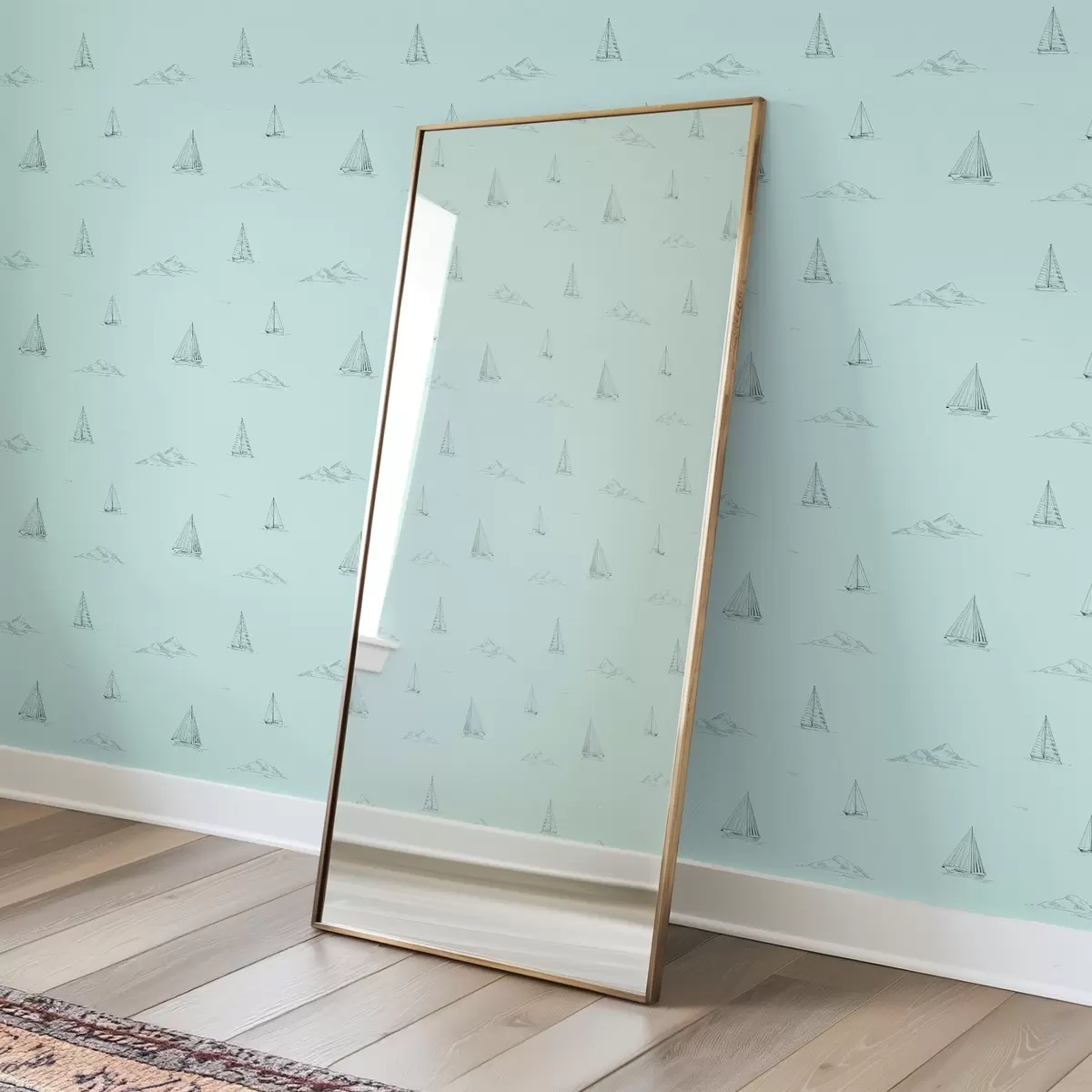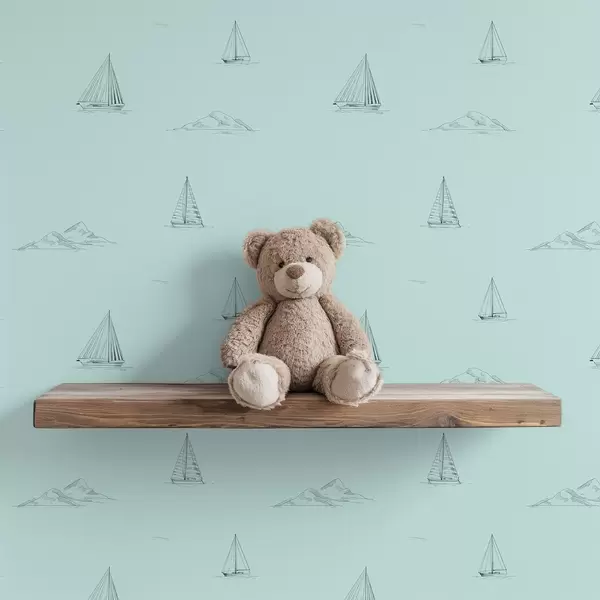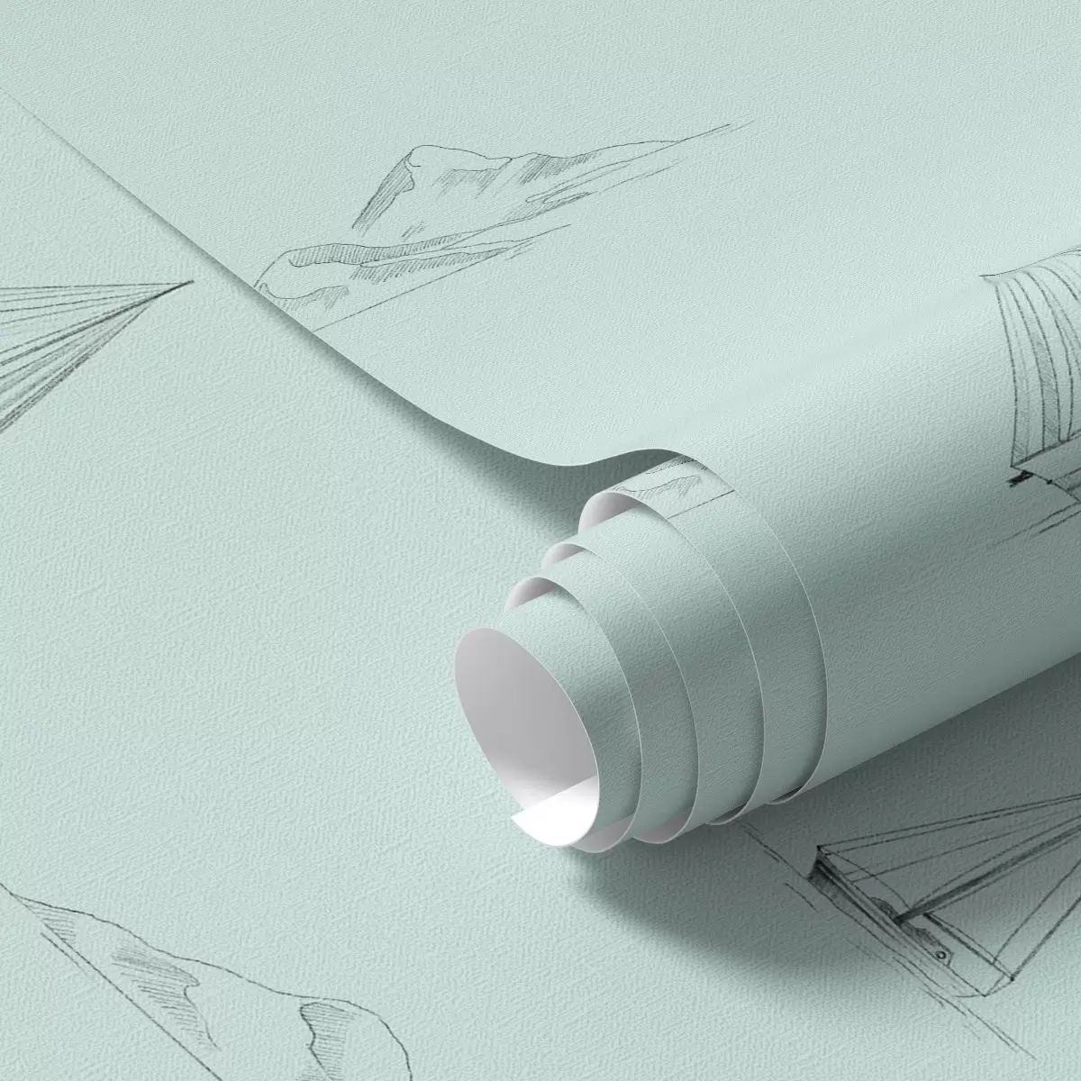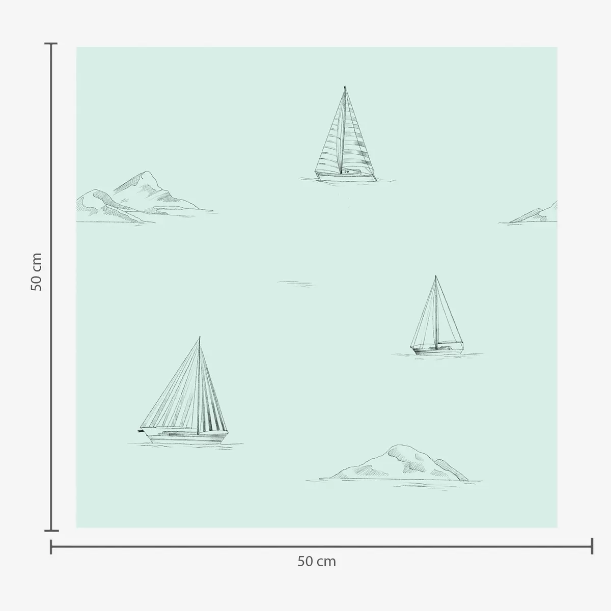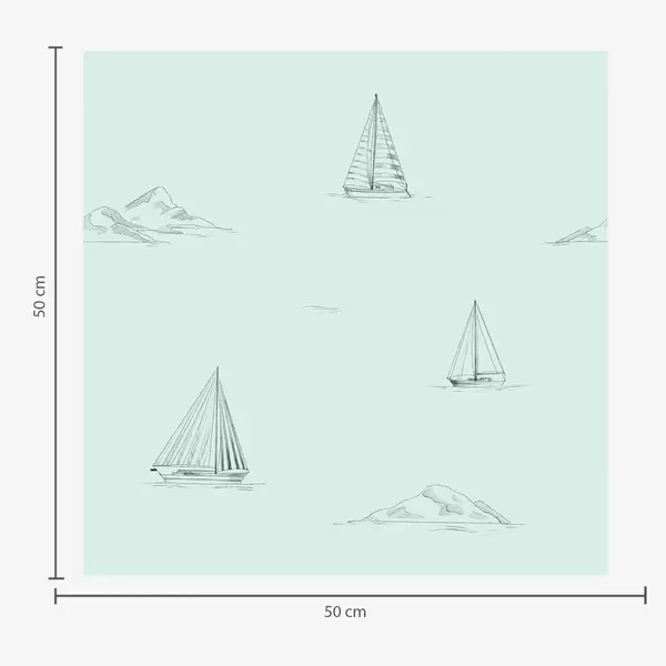 Tapetes Skices jahtas un salas, piparmētru zaļš fons Nr. a00654v4