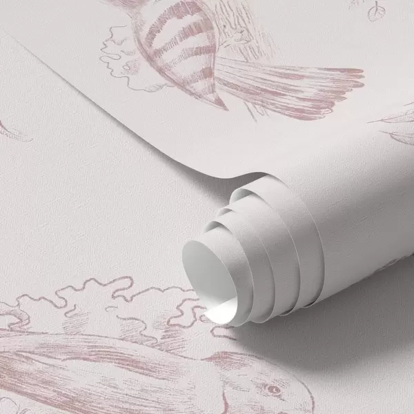 Tapetes Putnu audums: putnu skices, maigi rozā fons Nr. a00656