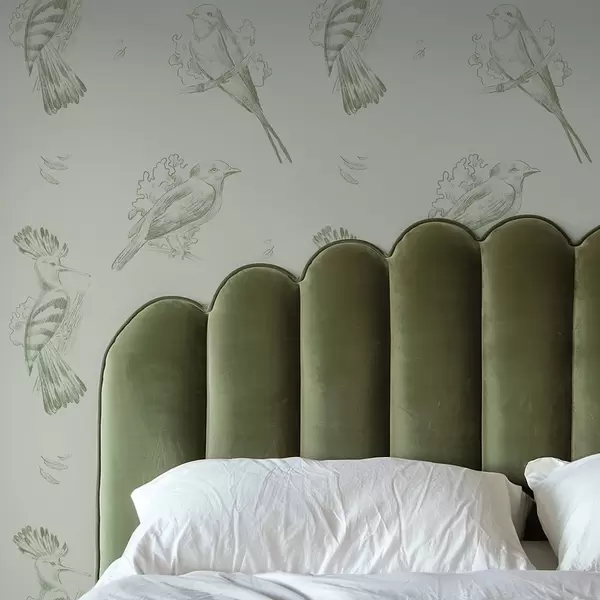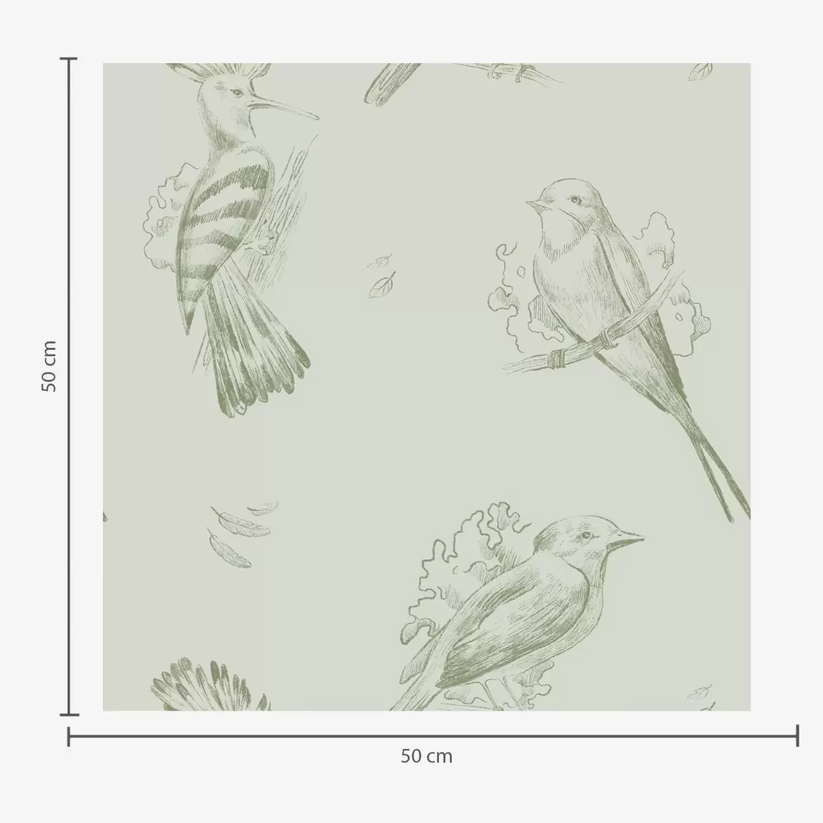 Tapetes Putnu audums: putnu skices uz pelēkzaļa fona Nr. a00656v1