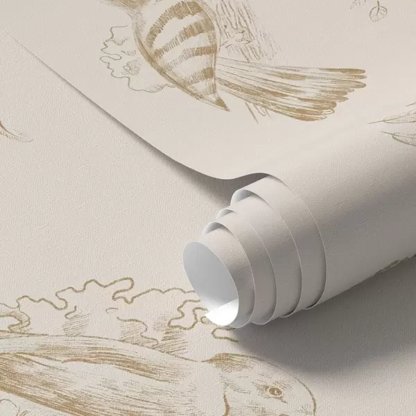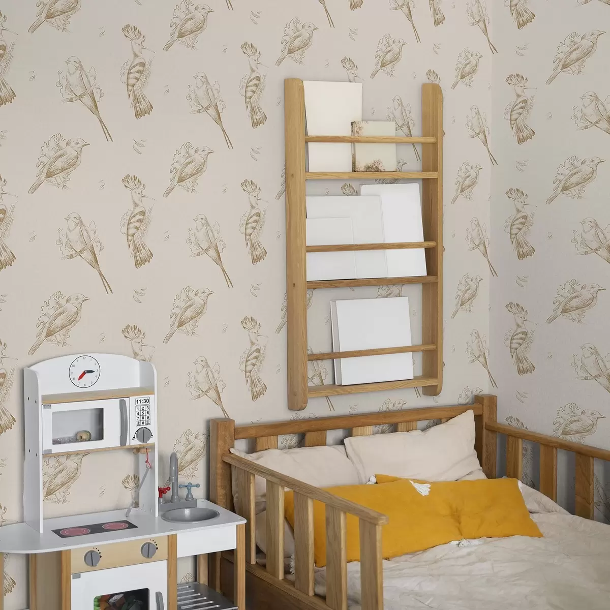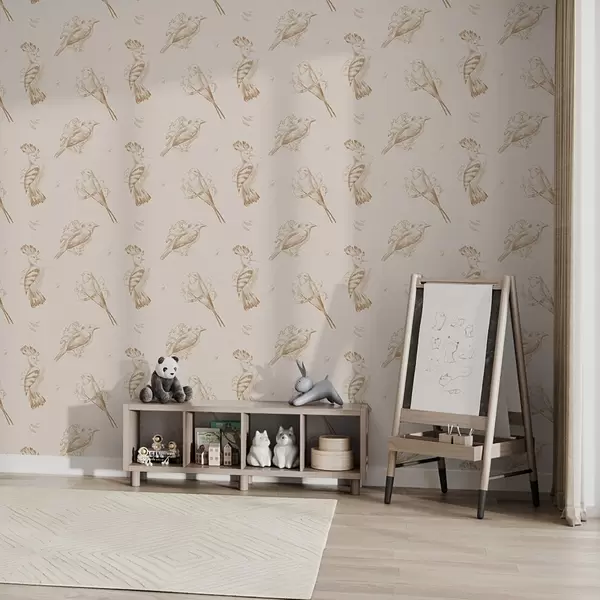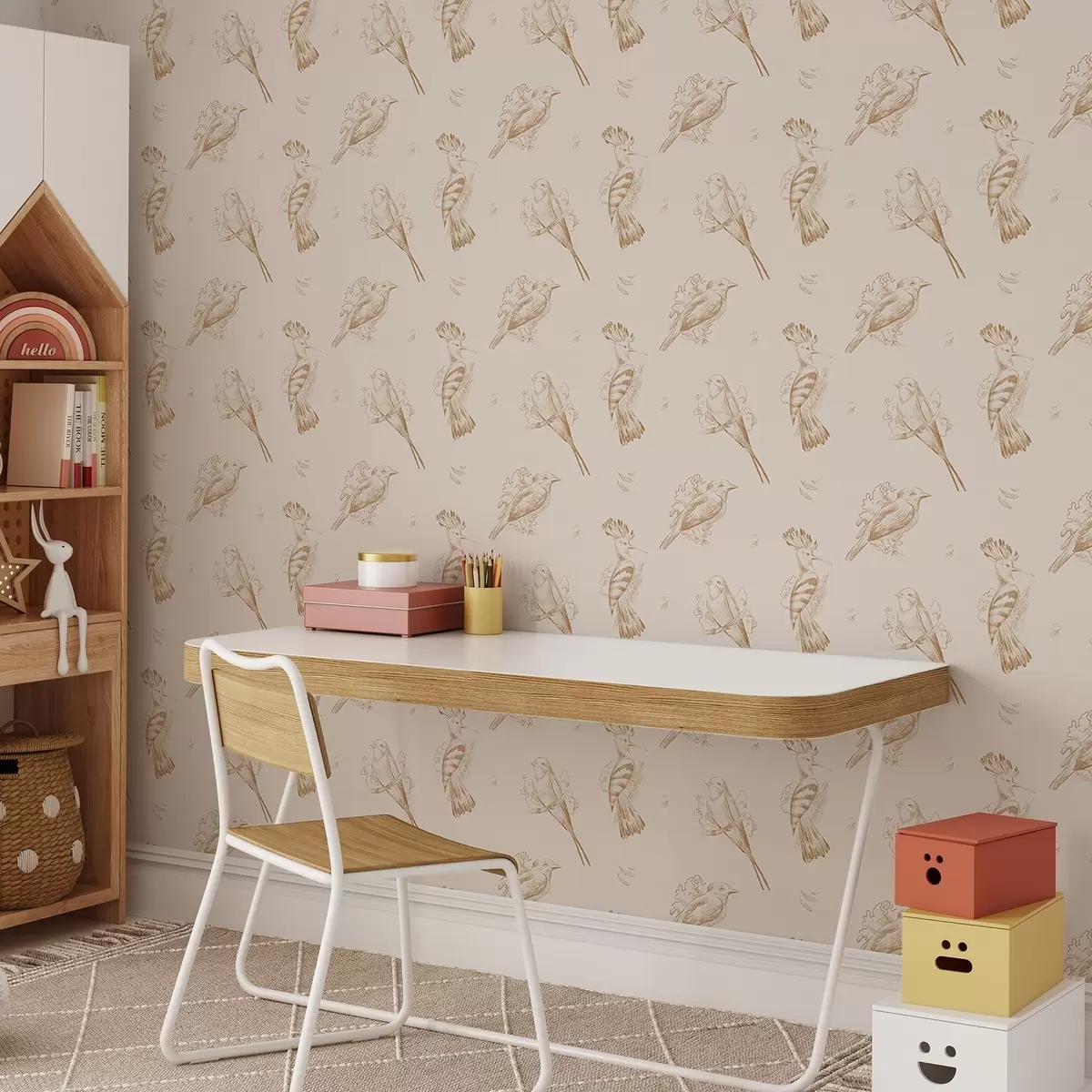 Tapetes Putnu audums: putnu skices uz siltā smilškrāsā fona Nr. a00656v3