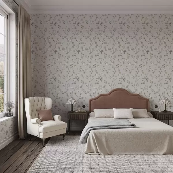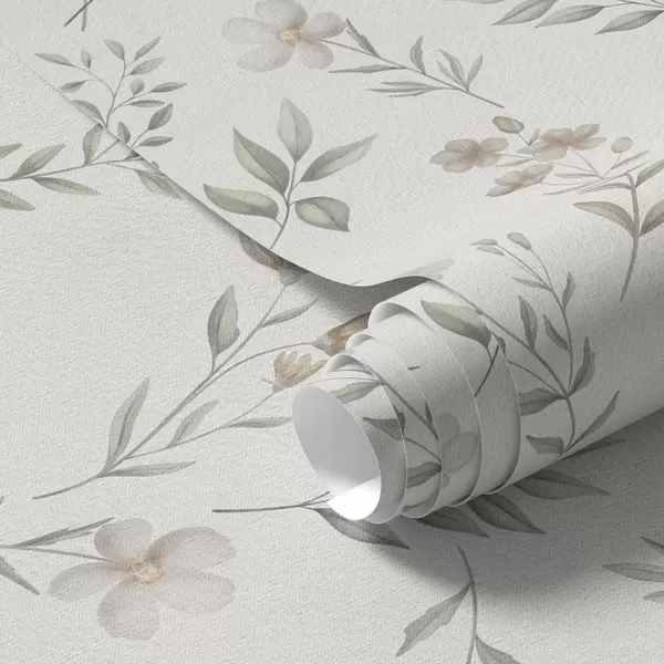 Tapetes Mazie akvareļu zariņi un ziedi uz gaiša fona Nr. a00665