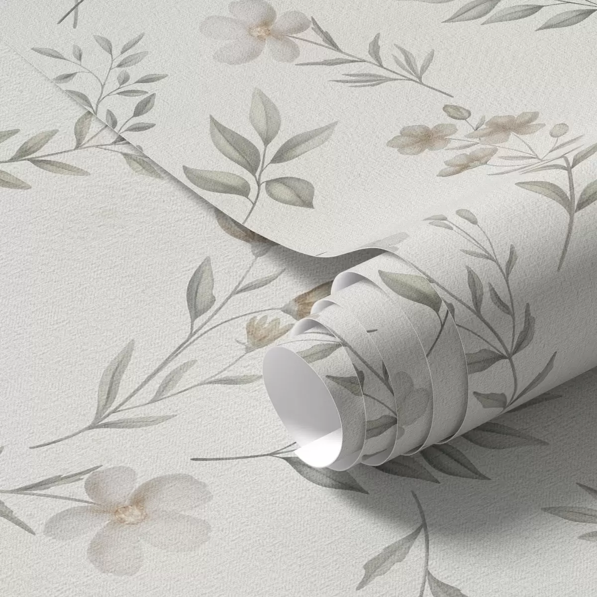 Tapetes Mazie akvareļu zariņi un ziedi uz gaiša fona a00665