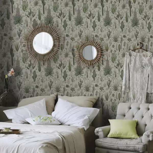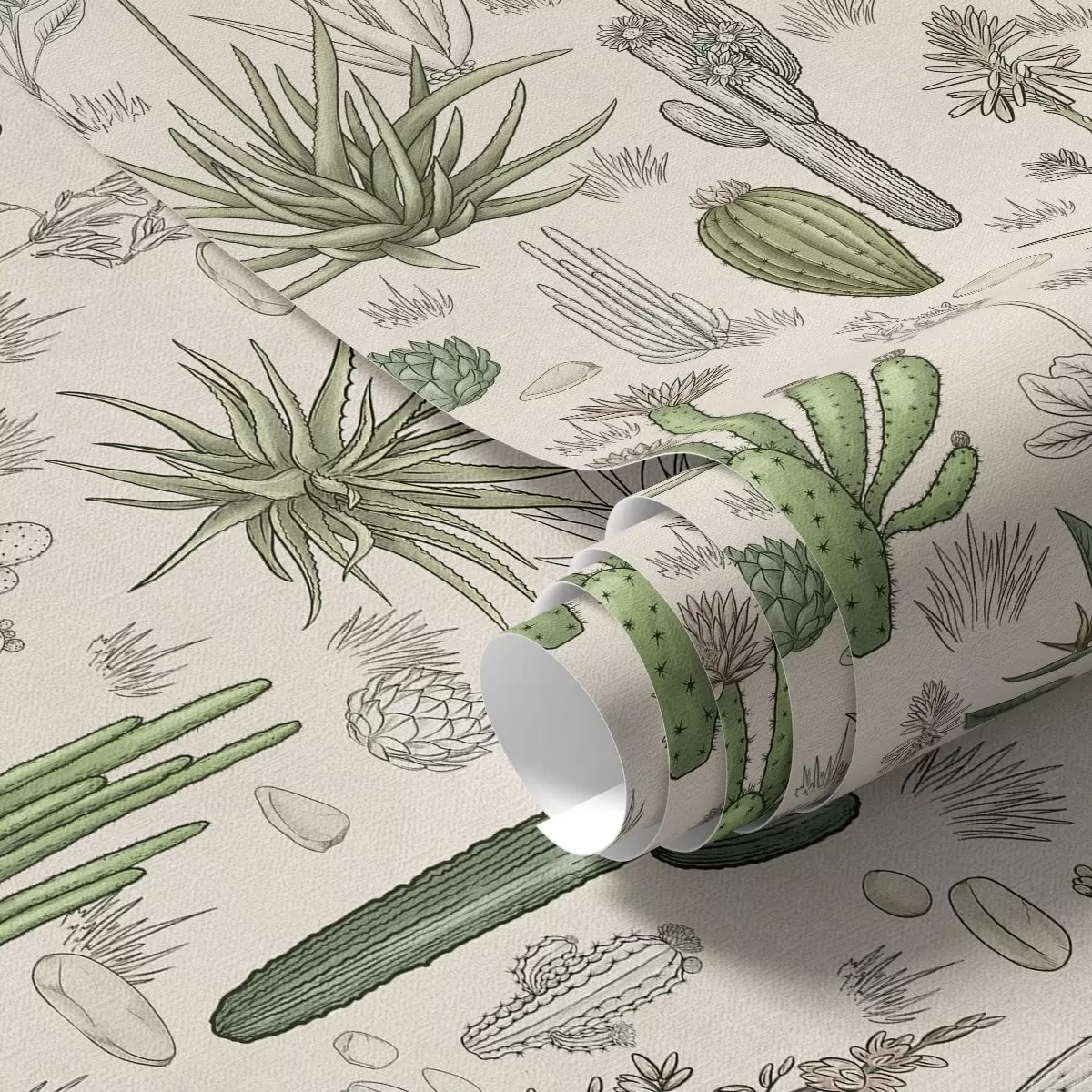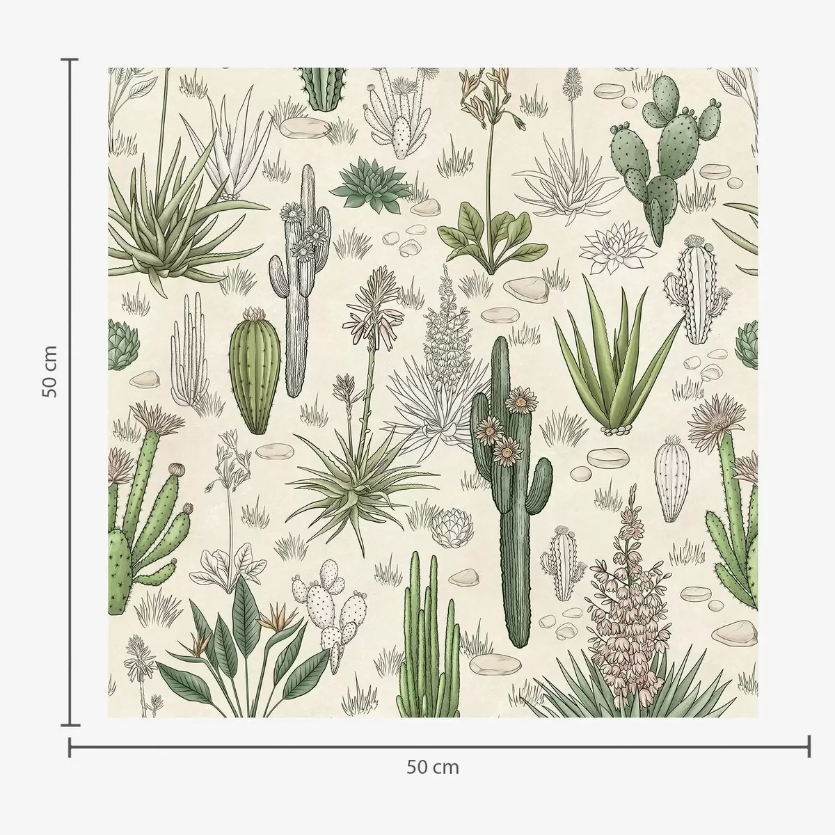 Tapetes Kaktusi un sukulenti uz siltā fona, detalizēts apdruka Nr. a00666
