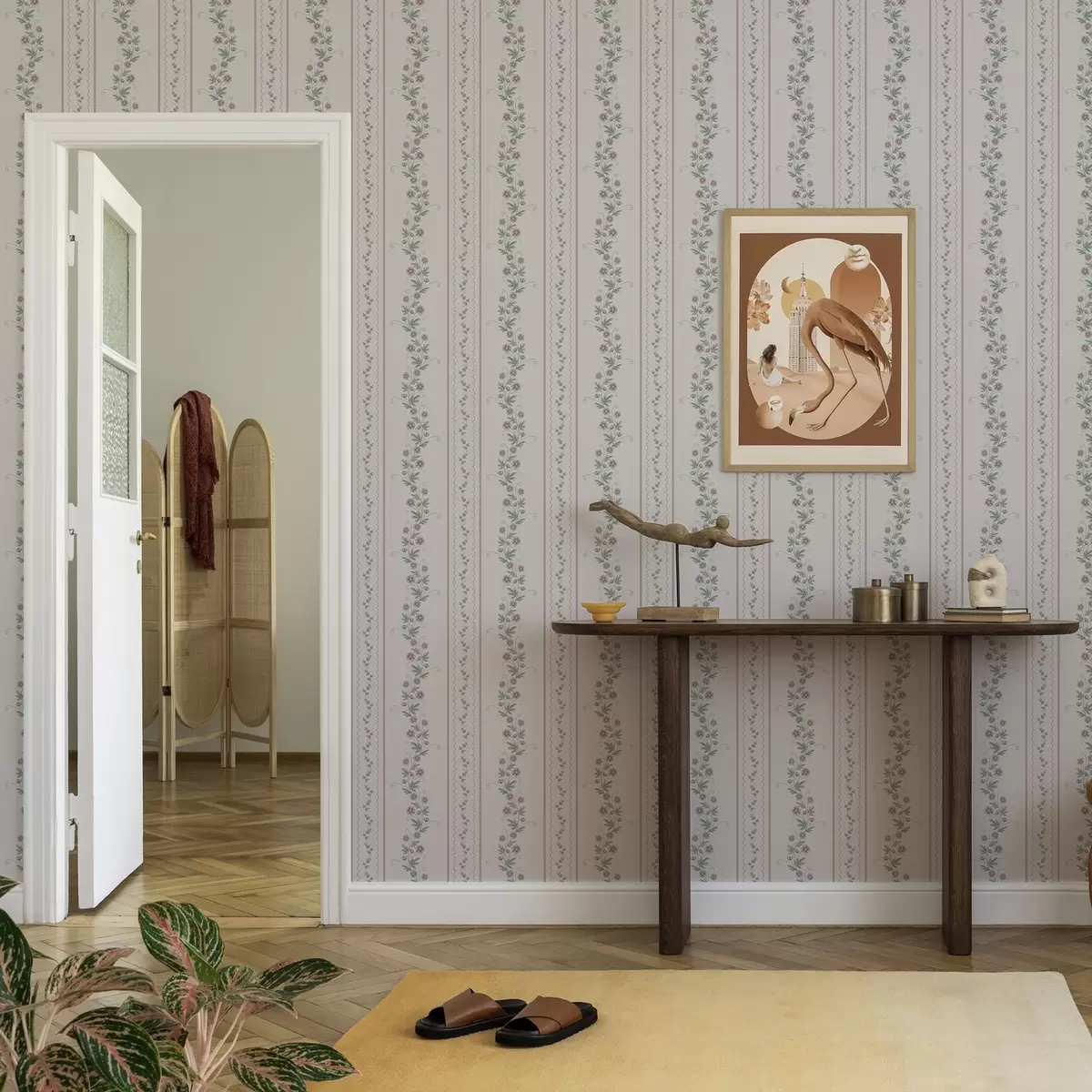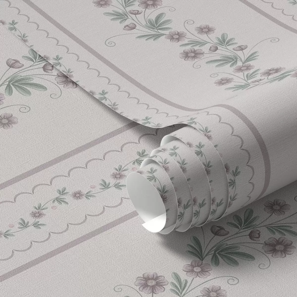 Tapetes Delikātas svītras ar lavandas ziediem, vintage Nr. a00671