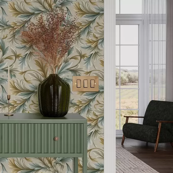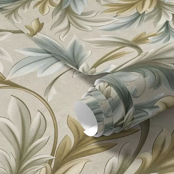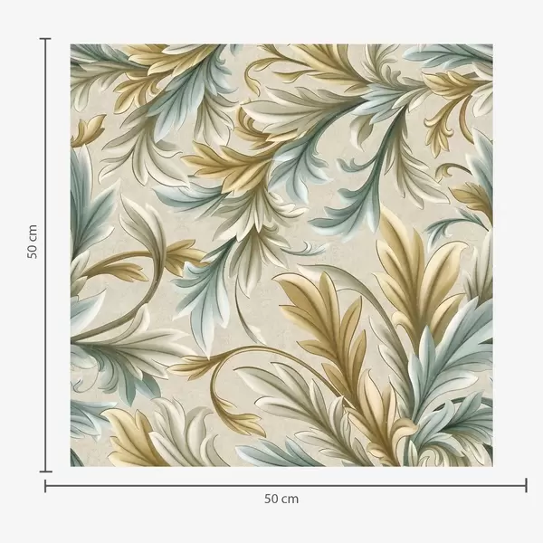 Tapetes Apjomīgas lapas pasteļtoņos zaļā un smilškrāsā Nr. a00674