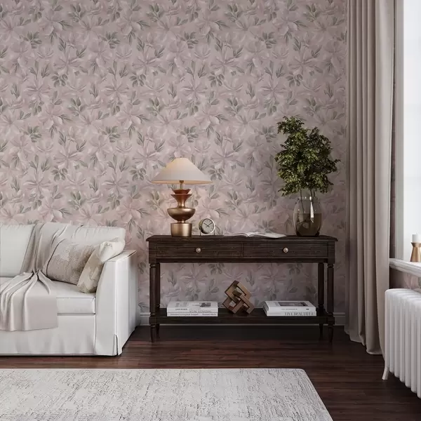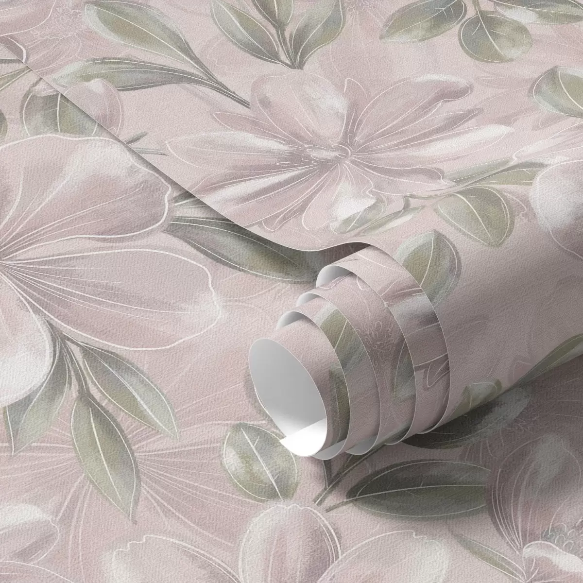 Tapetes Rozā ziedi ar maigām lapām uz maiga fona Nr. a00675