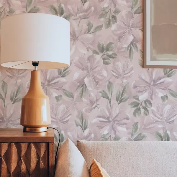 Tapetes Rozā ziedi ar maigām lapām uz maiga fona Nr. a00675