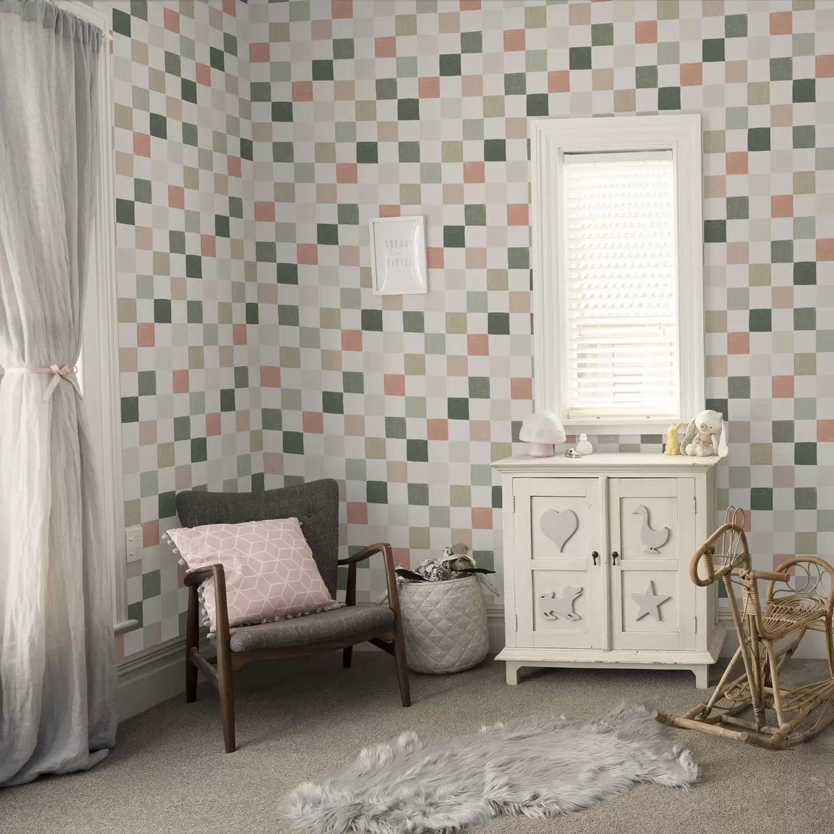 Tapetes Mīksts pleds pasteļzaļā, rozā un smilškrāsā toņos Nr. a00676