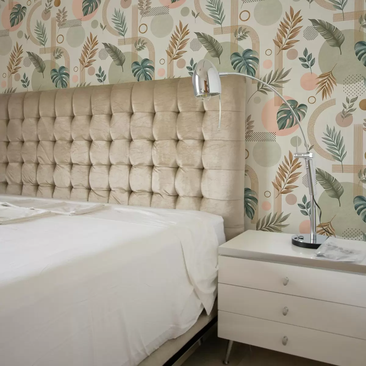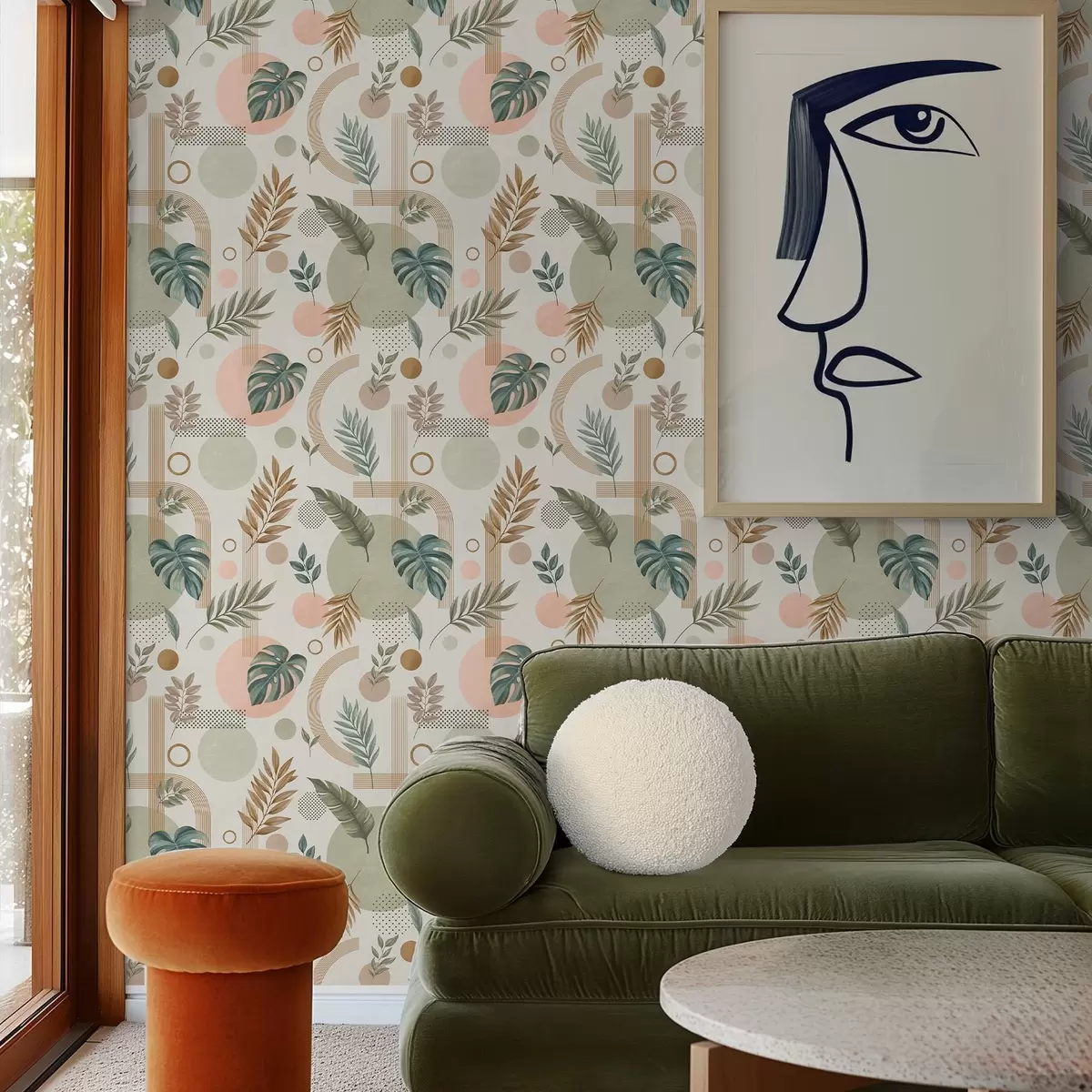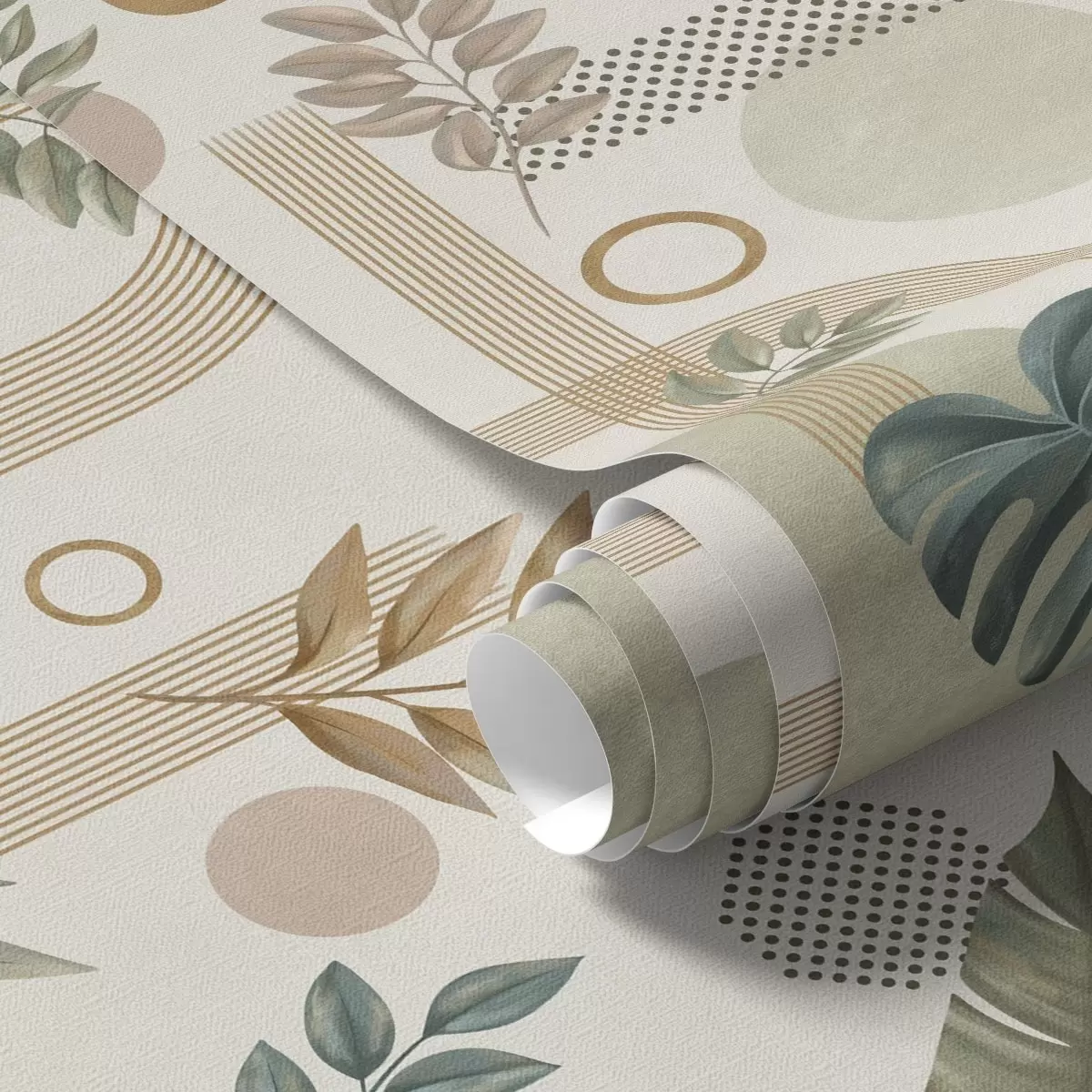 Tapetes Lapas un ģeometriskas formas mierīgos, siltos toņos Nr. a00677