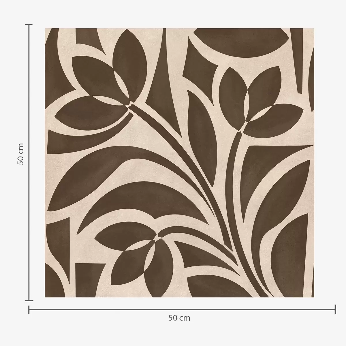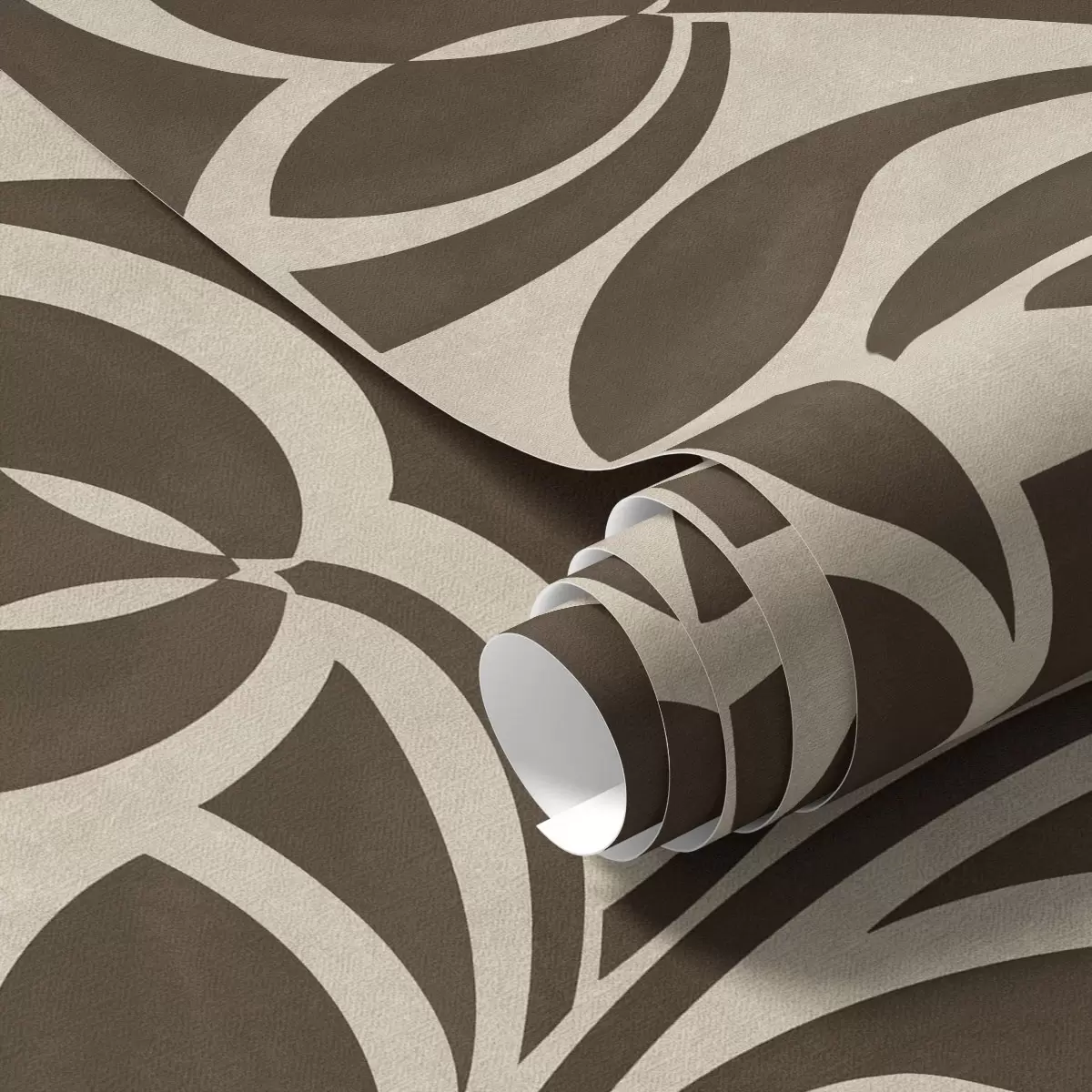 Tapetes Ģeometriskas lapu siluetas, tumši brūnas uz smilškrāsas fona Nr. a00679v1