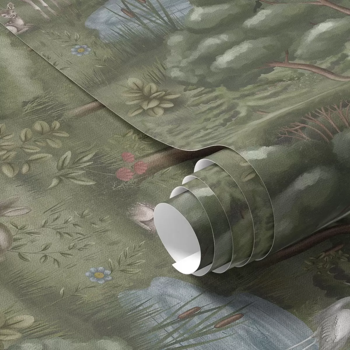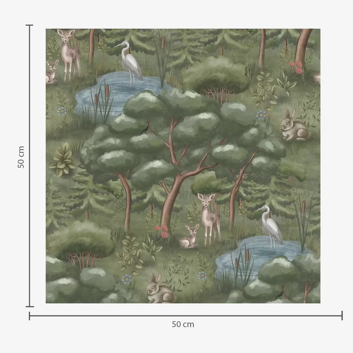 Tapetes Meža pļava ar briežiem, zaķiem un gārņiem Nr. a00680