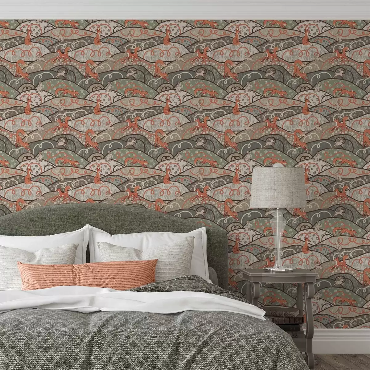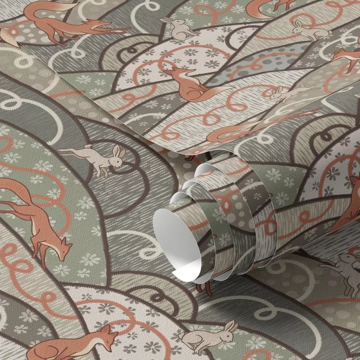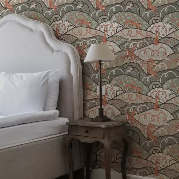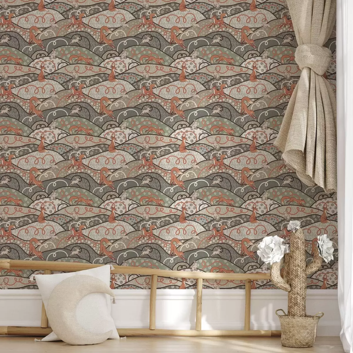 Tapetes Lapsas un zaķi uz viļņotiem pakalniem, retro raksts Nr. a00690