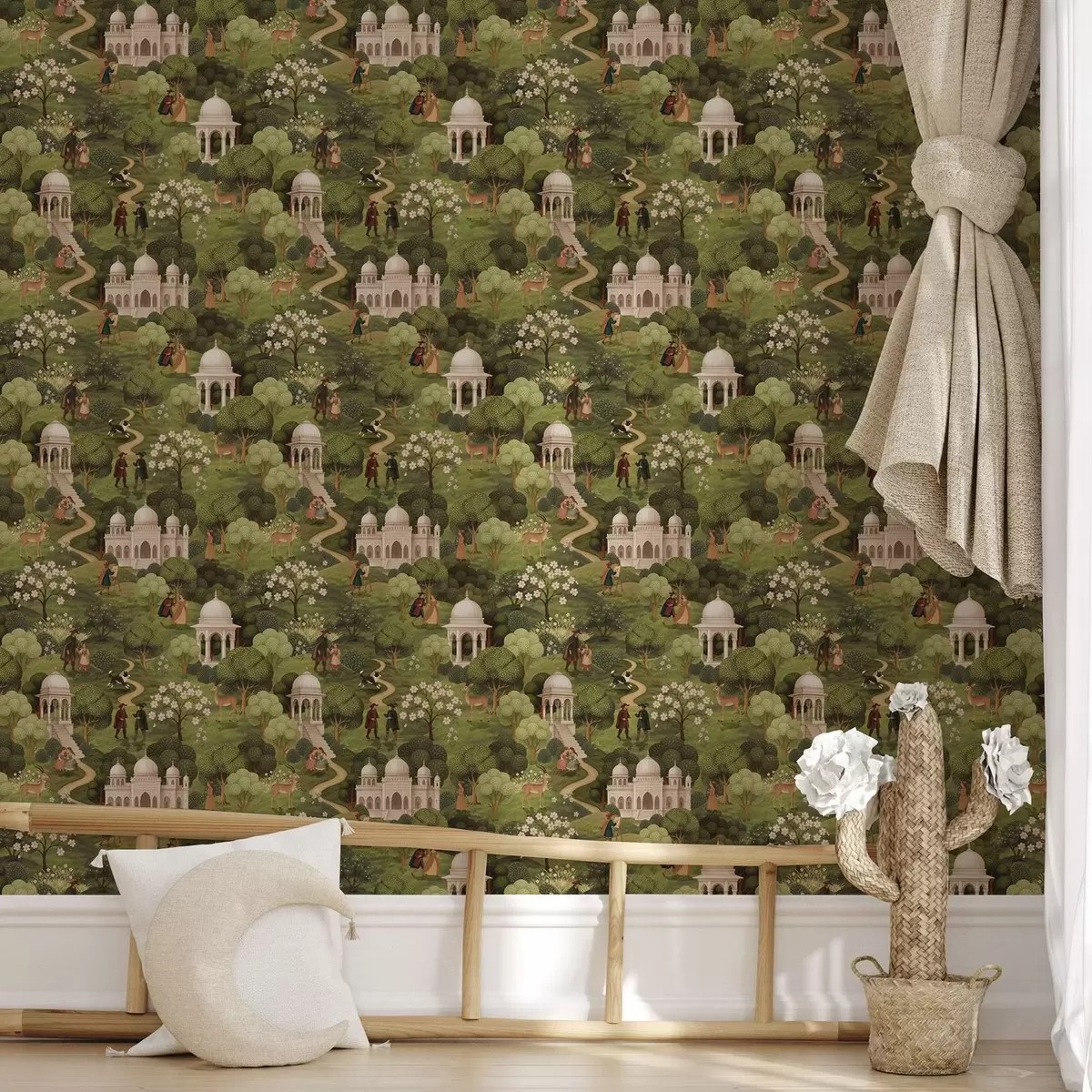 Tapetes Parka ainava ar kokiem un arhitektūru ainavas stilā Nr. a00705