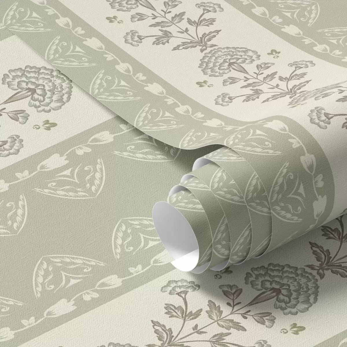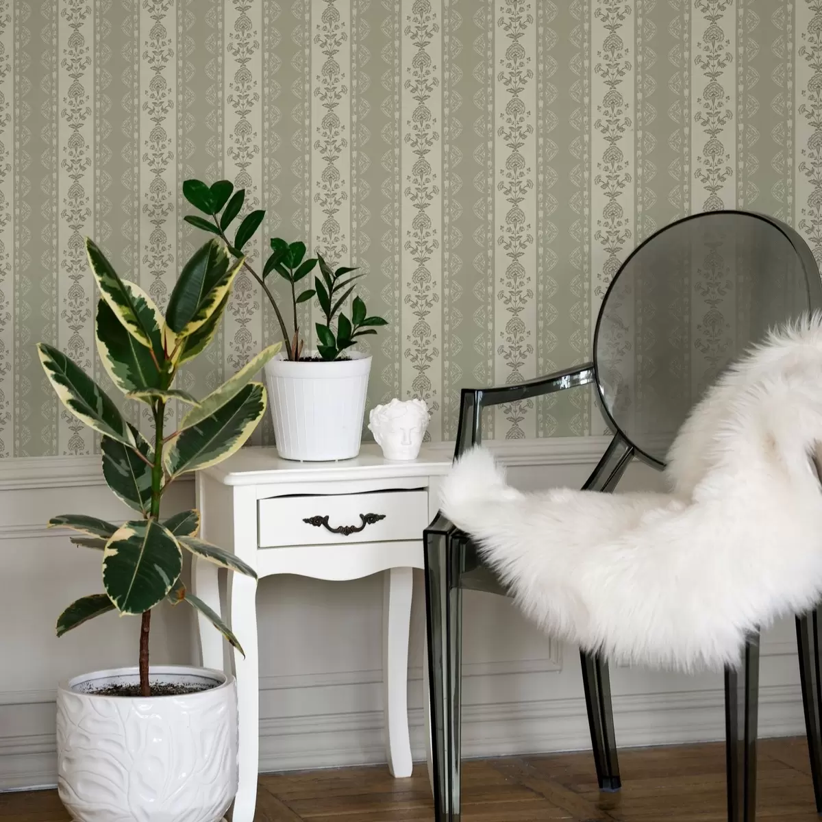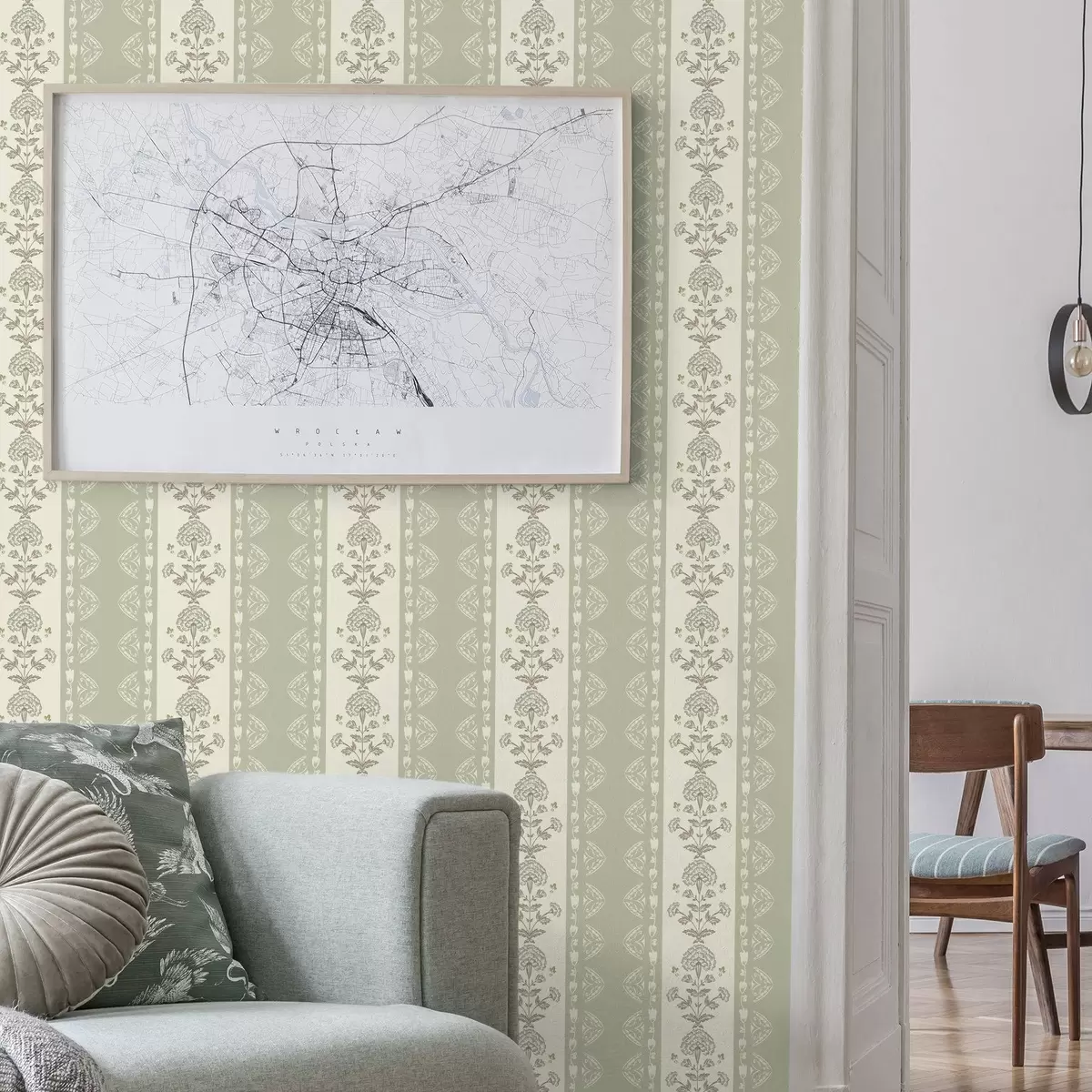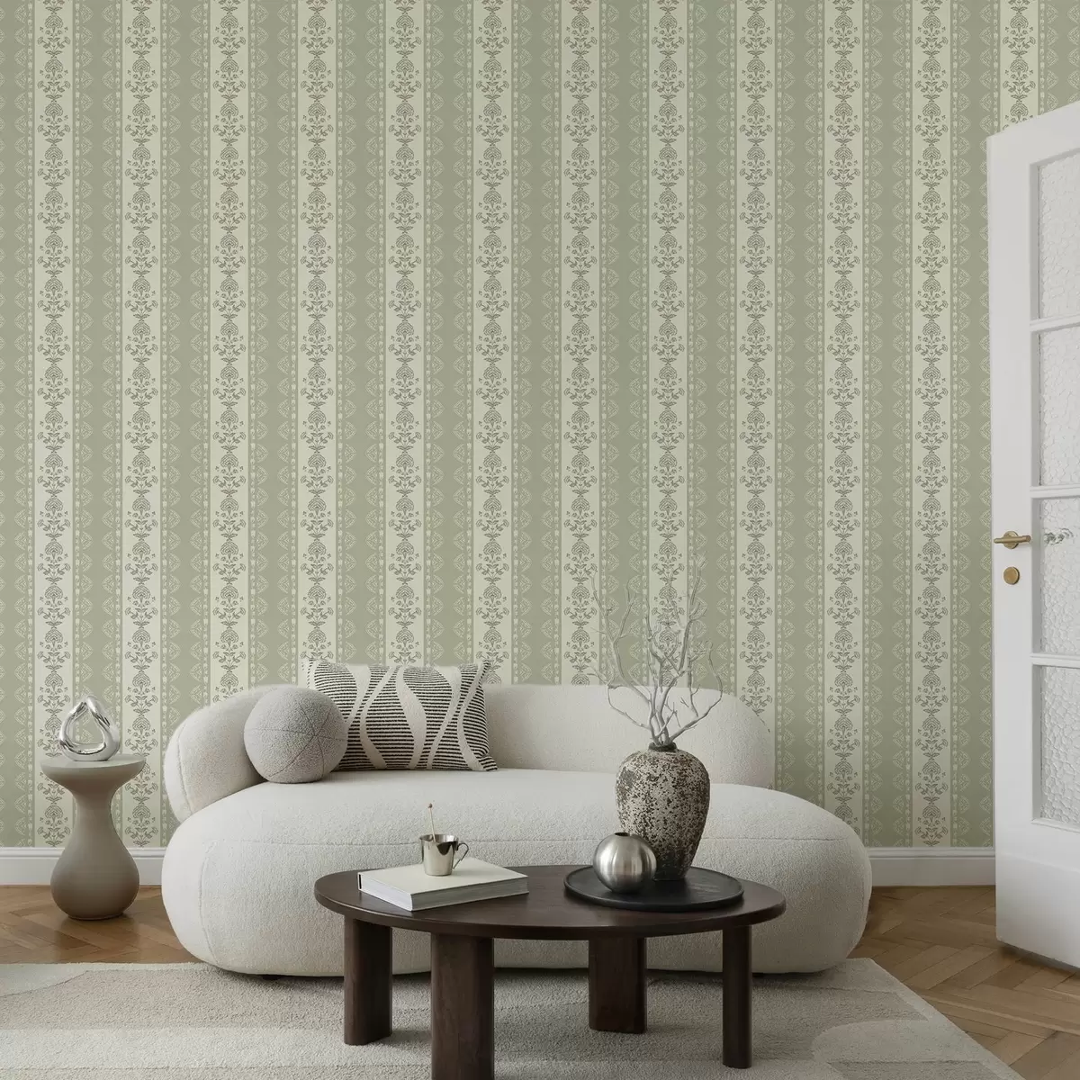 Tapetes Svītrains ornamentiņš ar ziedu kolonnām salvijas toņos Nr. a00719