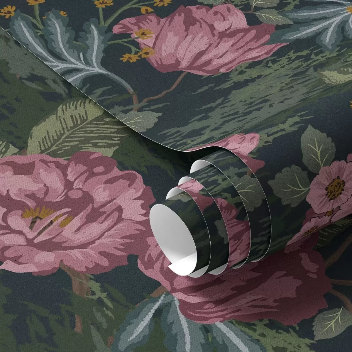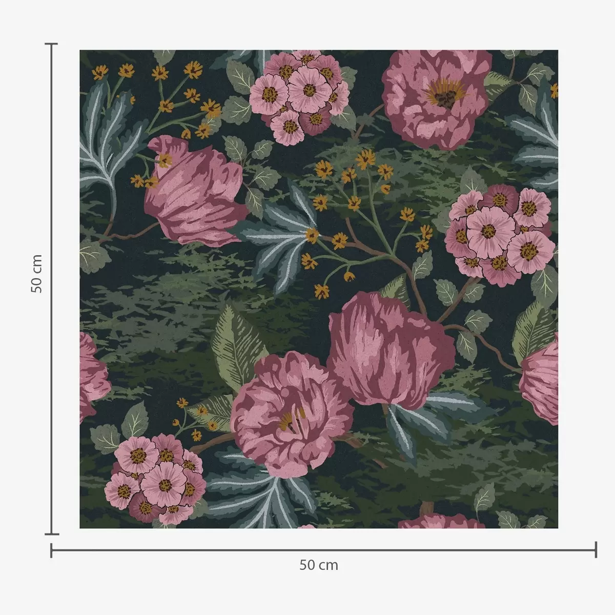 Tapetes Tumša flora ar rozā ziediem un lapām, tumšs fons Nr. a00724