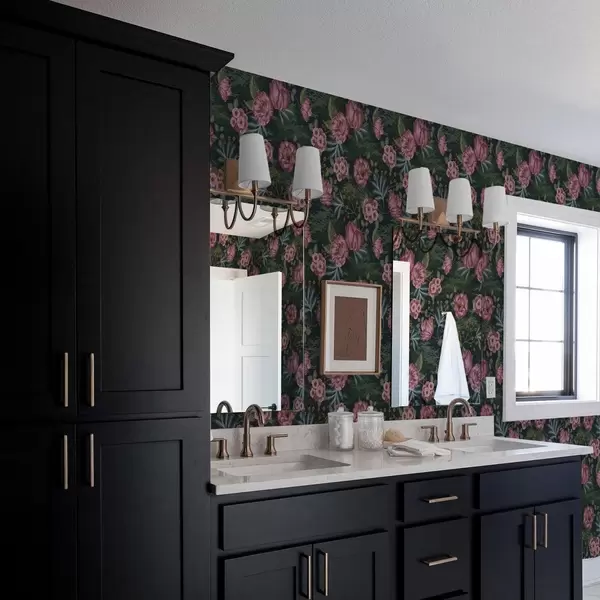 Tapetes Tumša flora ar rozā ziediem un lapām, tumšs fons Nr. a00724