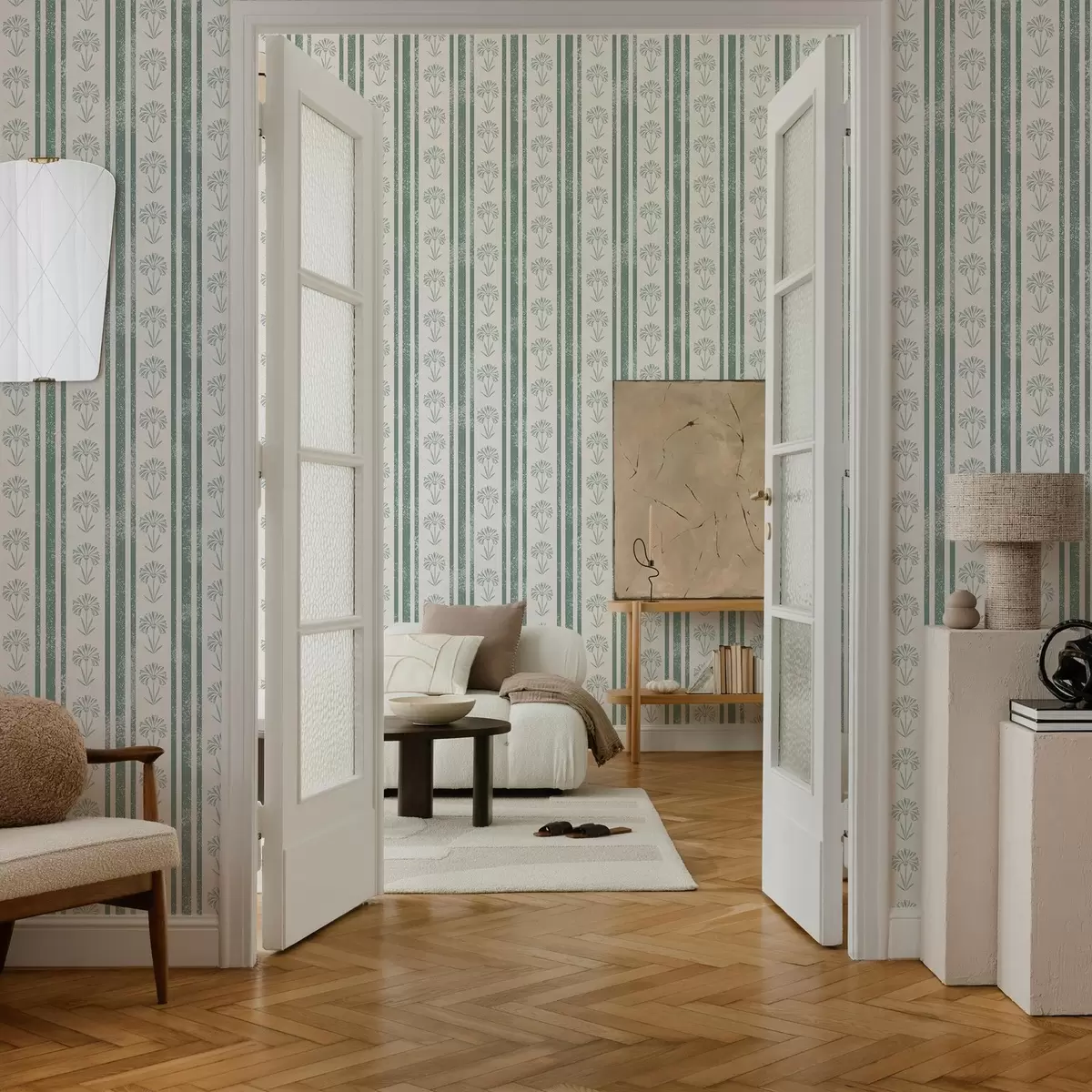Tapetes Lentes raksts ar ziediem zaļos toņos Nr. a00732