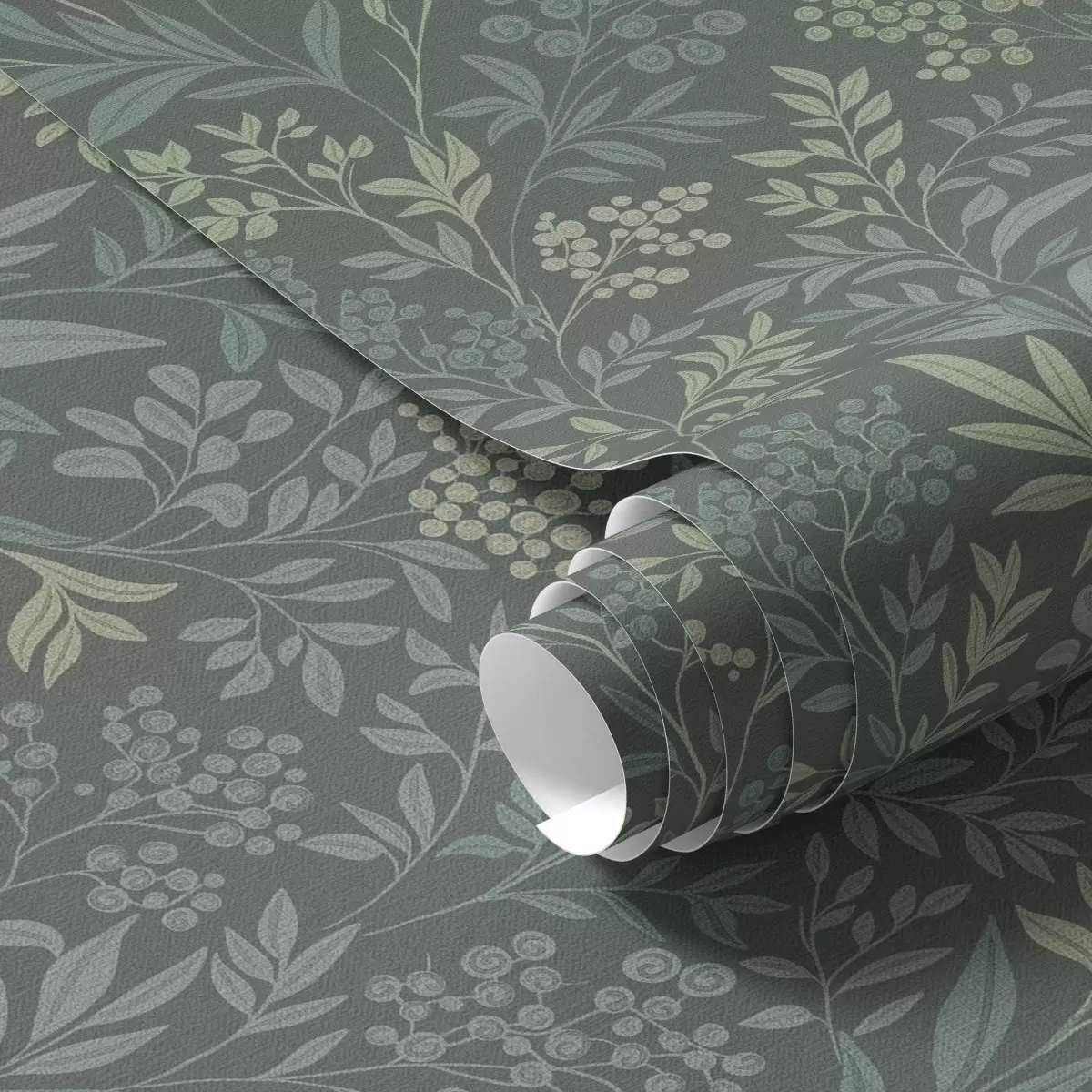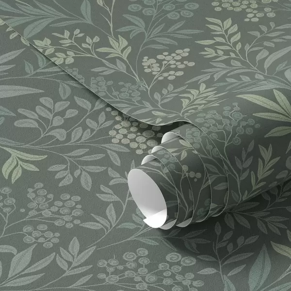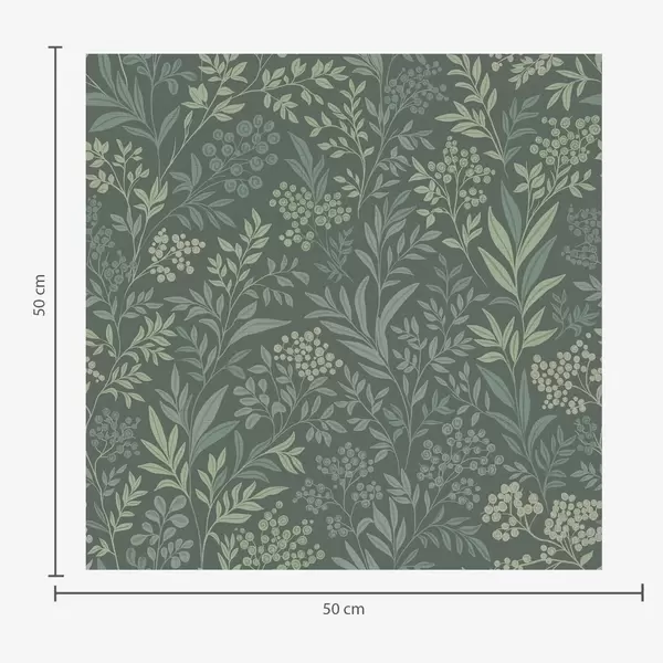 Tapetes Smaragda zaļas zāles un ogas, smalks botānisks raksts Nr. a00740