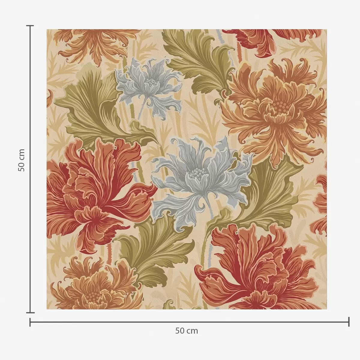 Tapetes Lielas krizantēmas siltos toņos uz smilškrāsas fona Nr. a00743