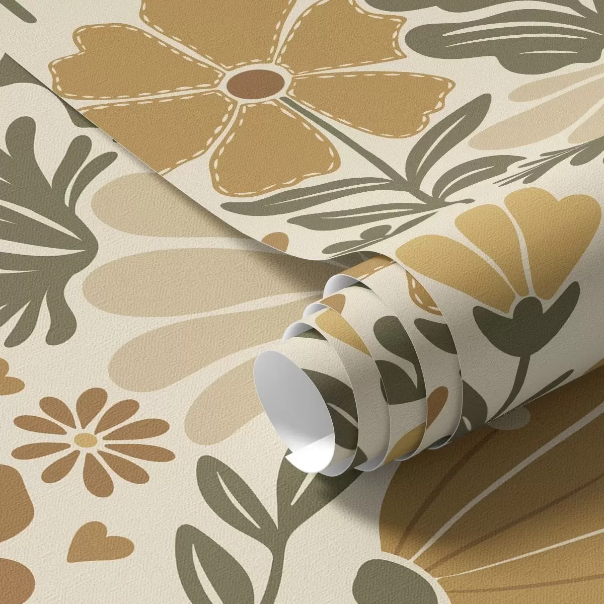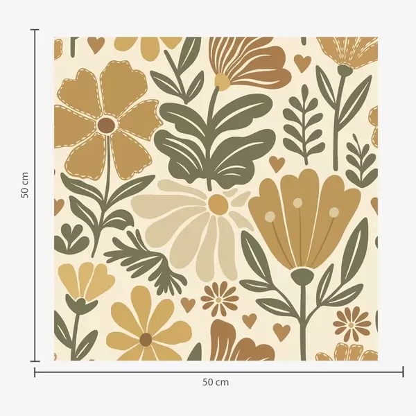 Tapetes Stilizēti ziedi siltos toņos ar sirdīm Nr. a00752
