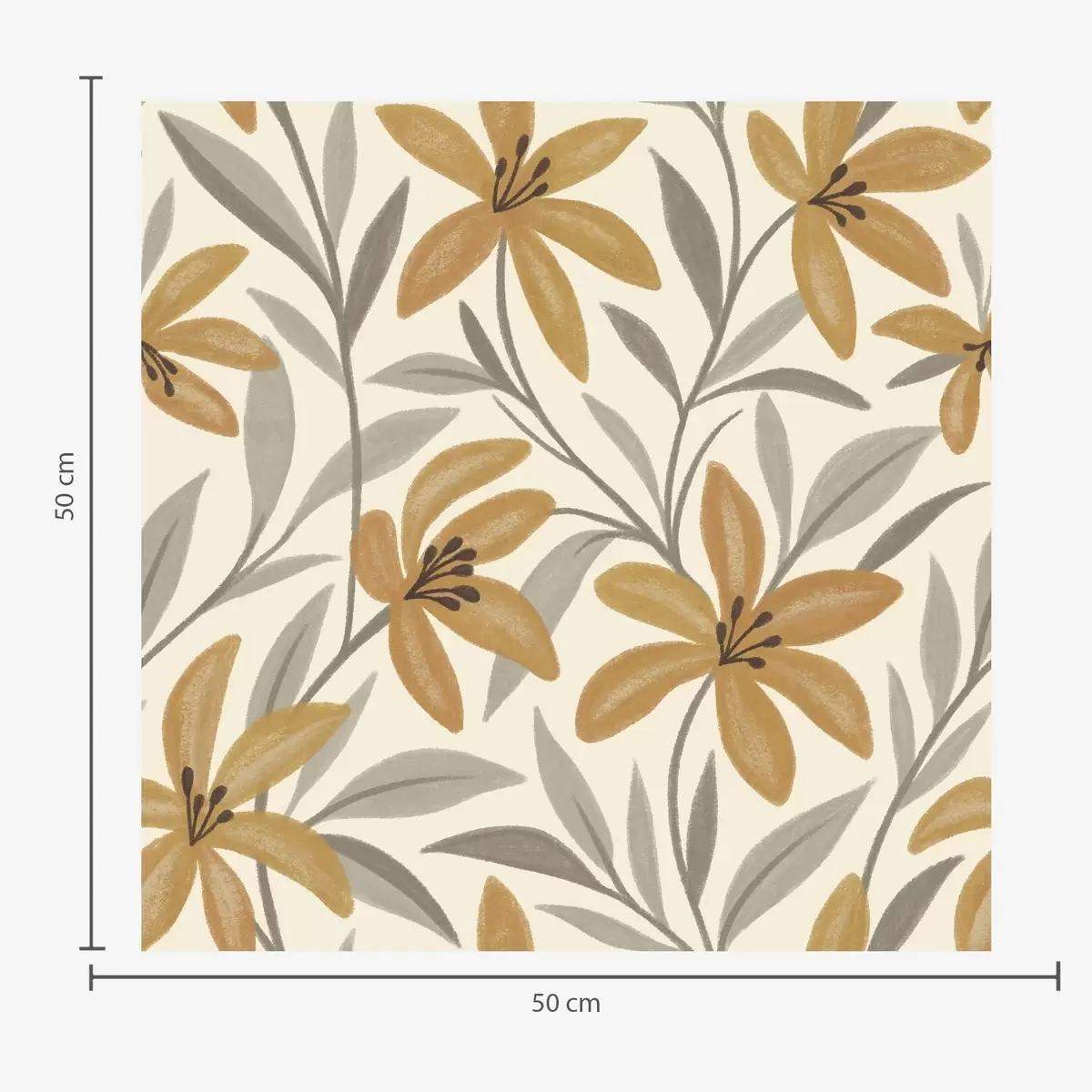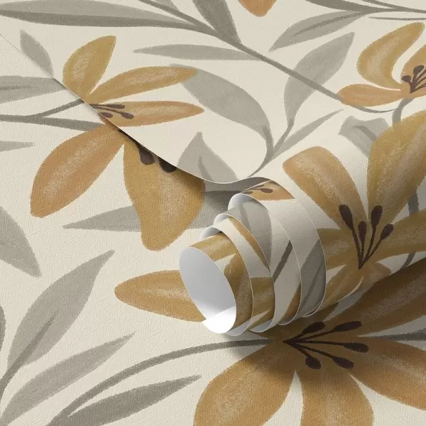 Tapetes Dzeltenas lilijas un pelēkzaļas lapas uz gaiša fona Nr. a00757