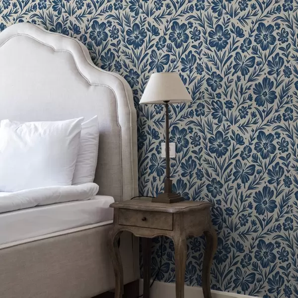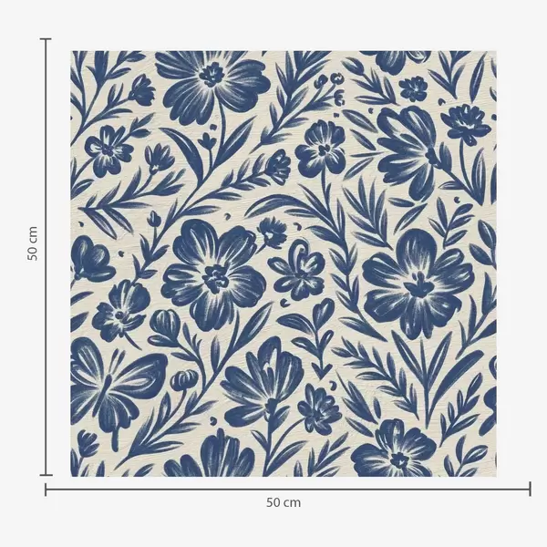 Tapetes Zils ziedu ornamentiņš ar tauriņiem Nr. a00758