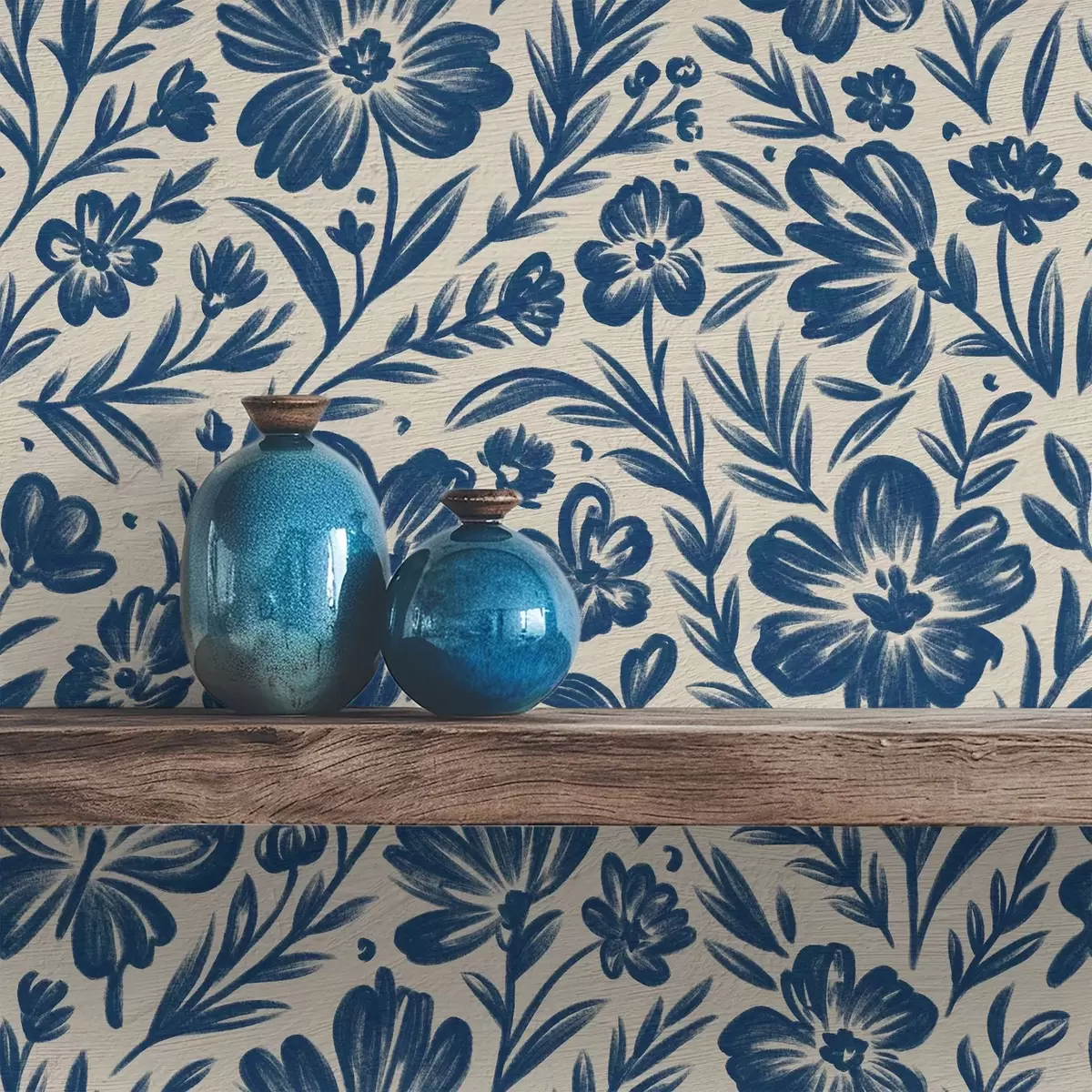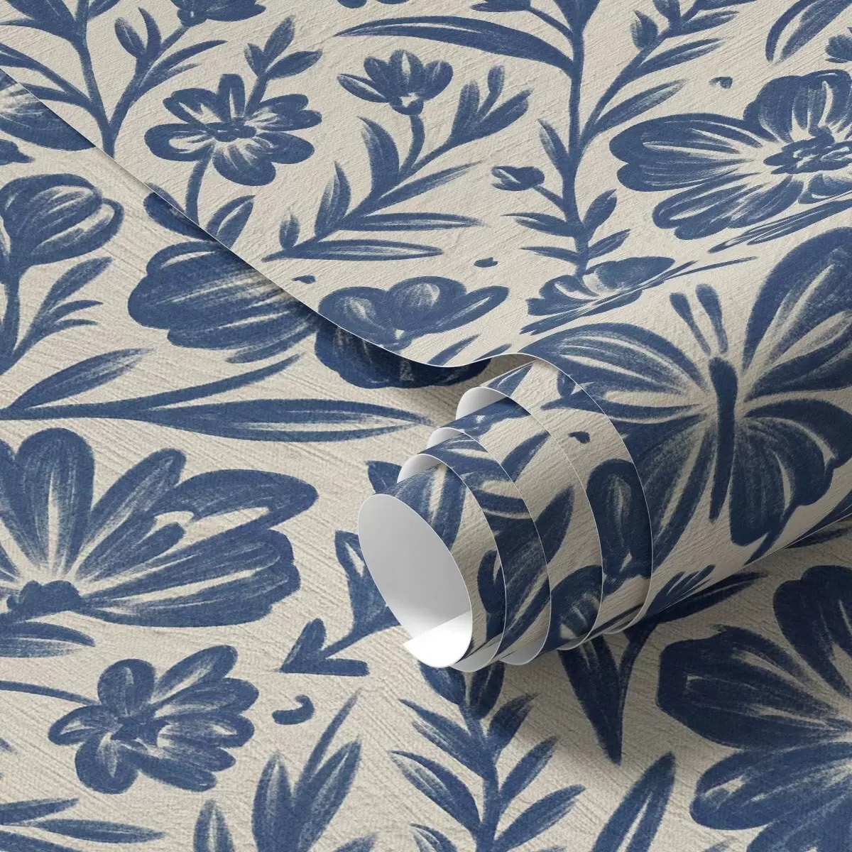 Tapetes Zils ziedu ornamentiņš ar tauriņiem Nr. a00758